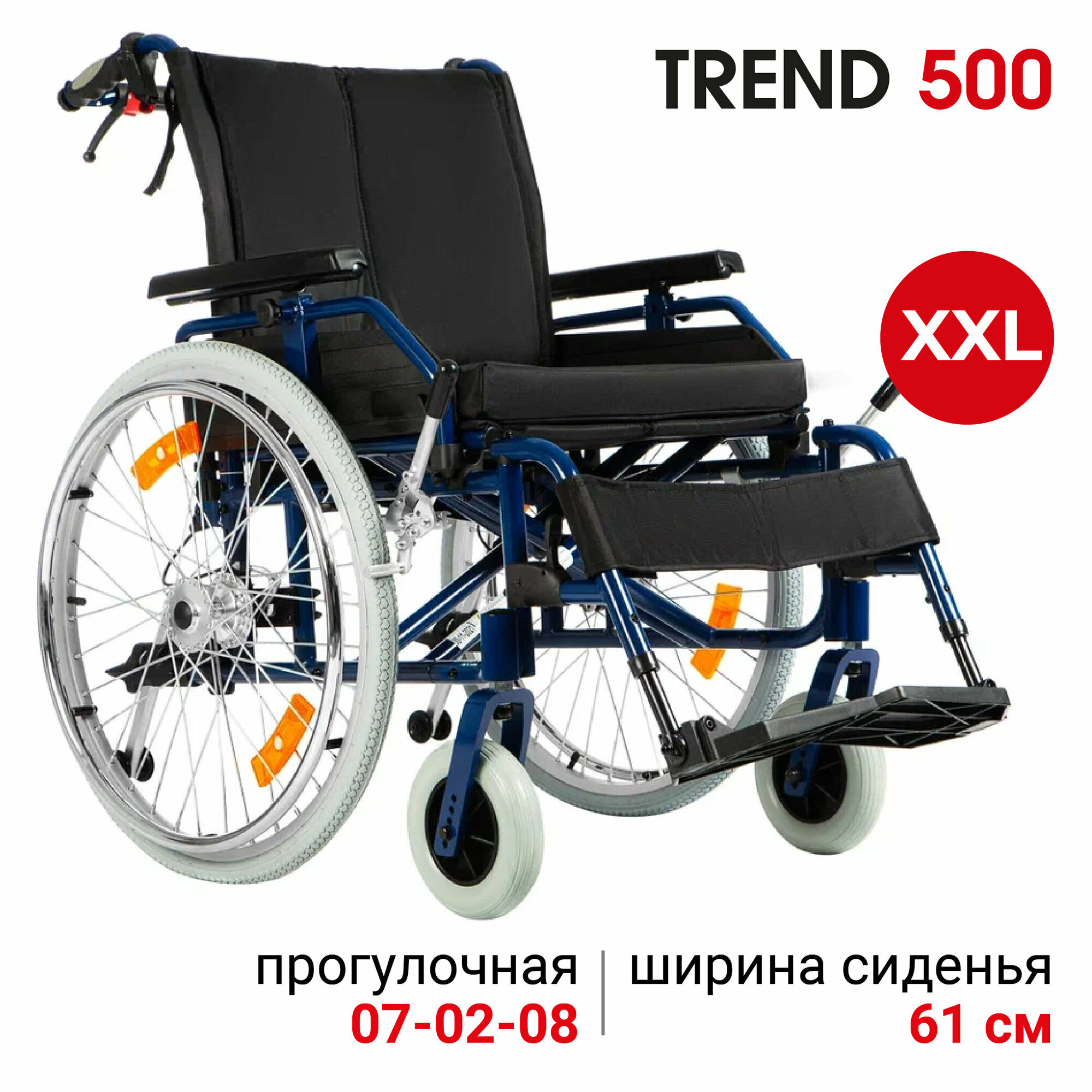 Кресло-коляска для инвалидов комнатная повышенной грузоподъемности Ortonica Trend 60//Trend 500 61UU ширина сиденья 61 см литые/литые Код ФСС 07-01-07с литыми колесами