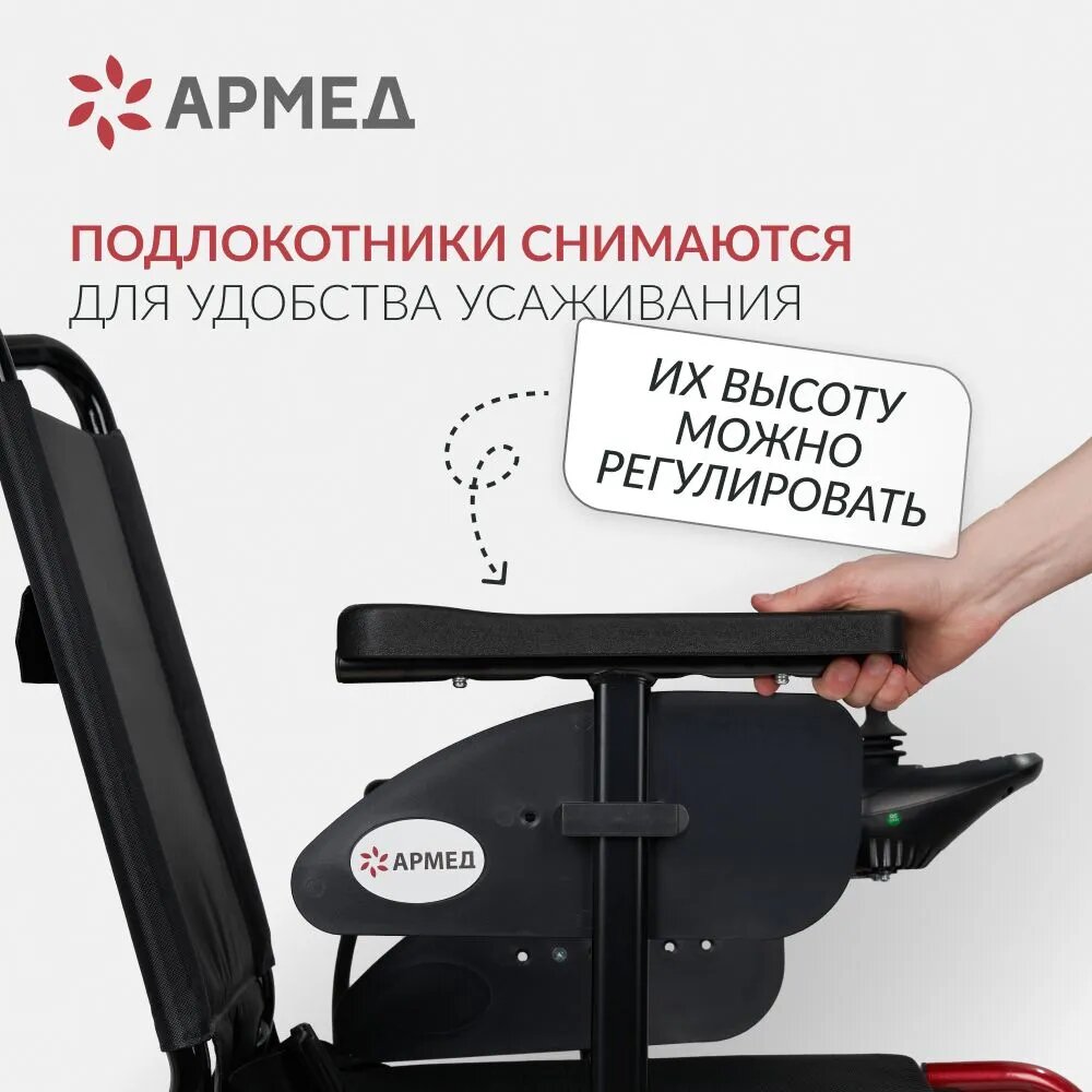 Кресло-коляска c электроприводом Армед JRWD601 сиденье 44 см, инвалидная и для пожилых людей, прогулочная, регулировка спинки, подлокотников, подножек интересное: