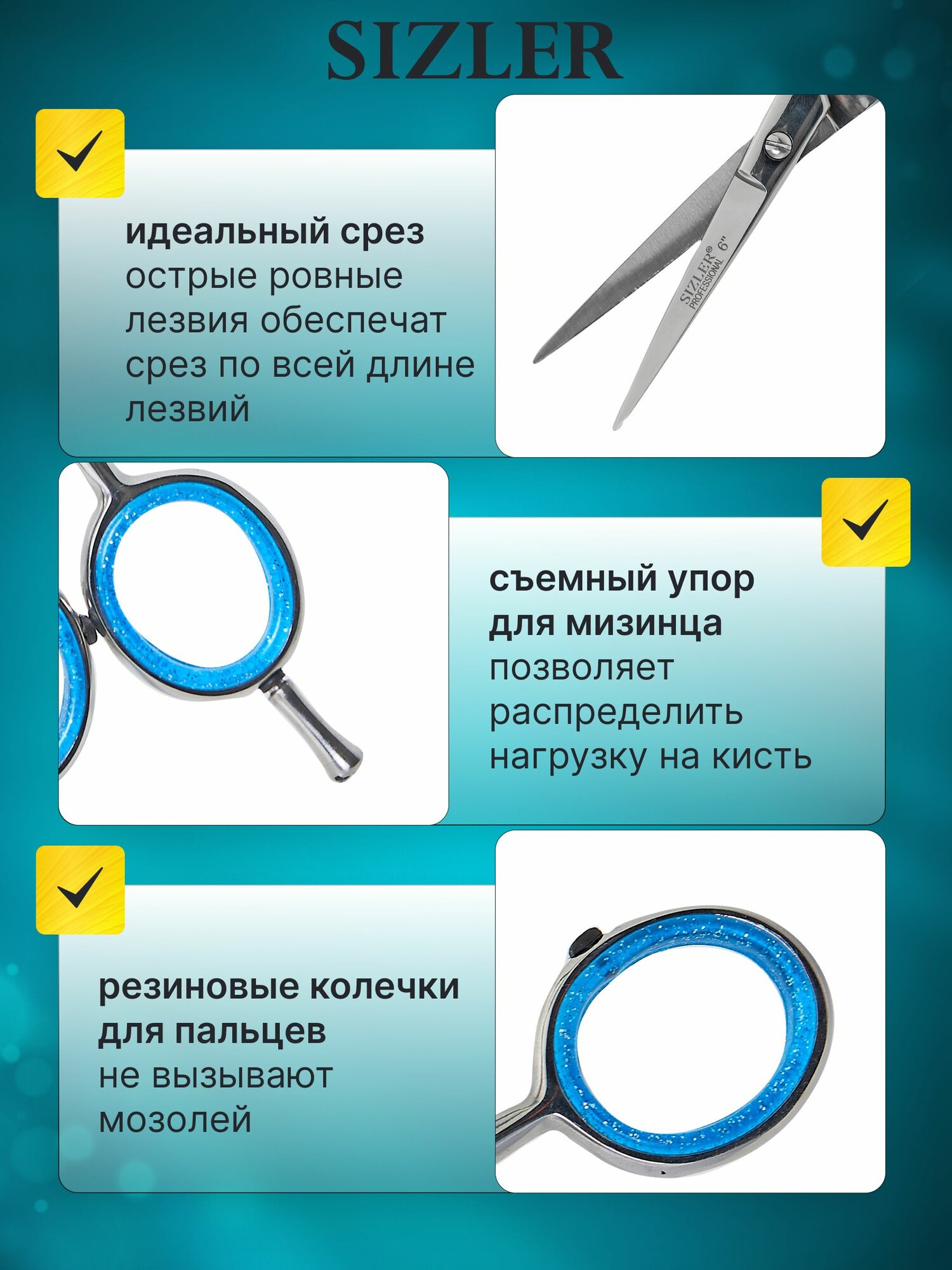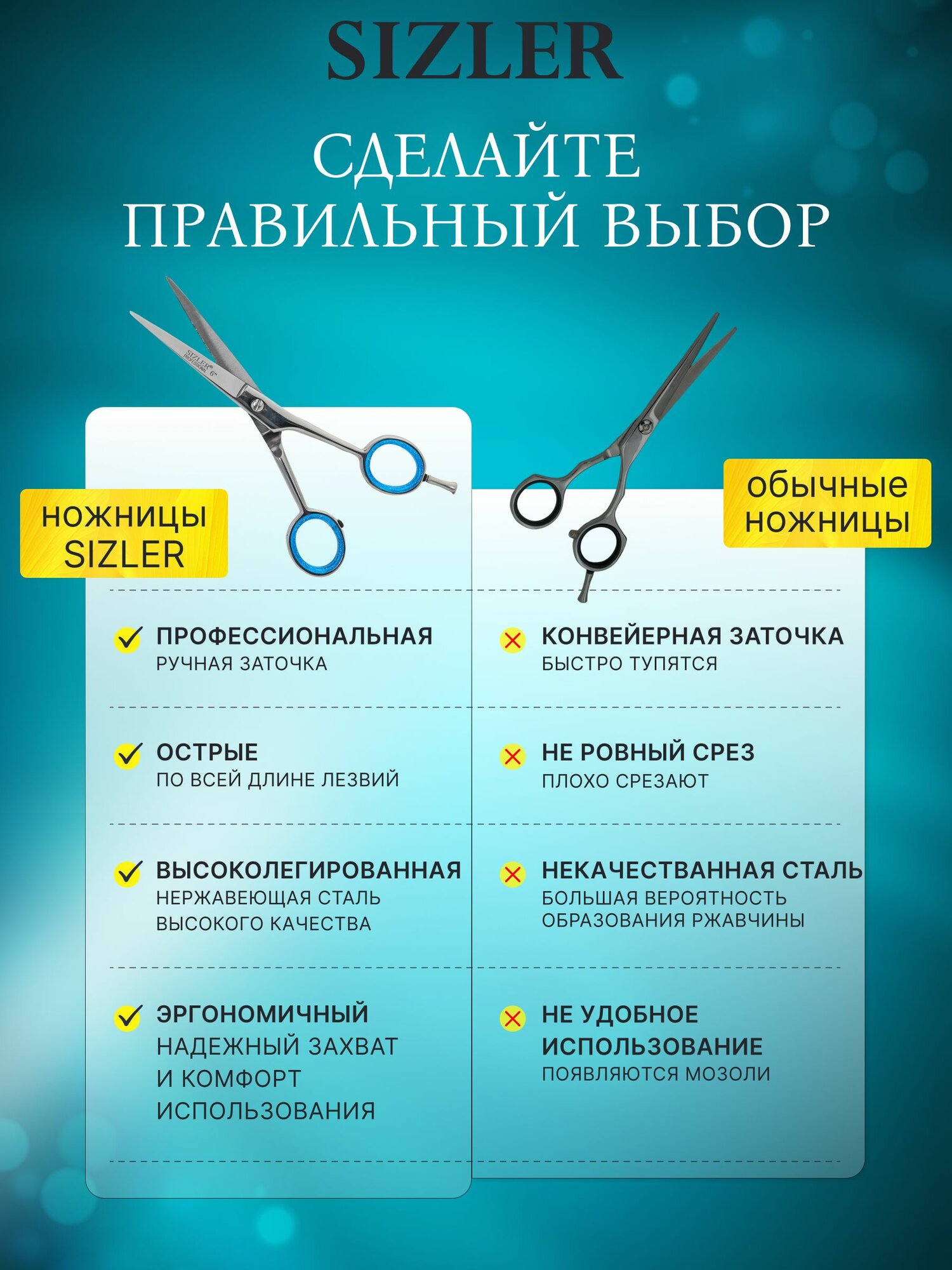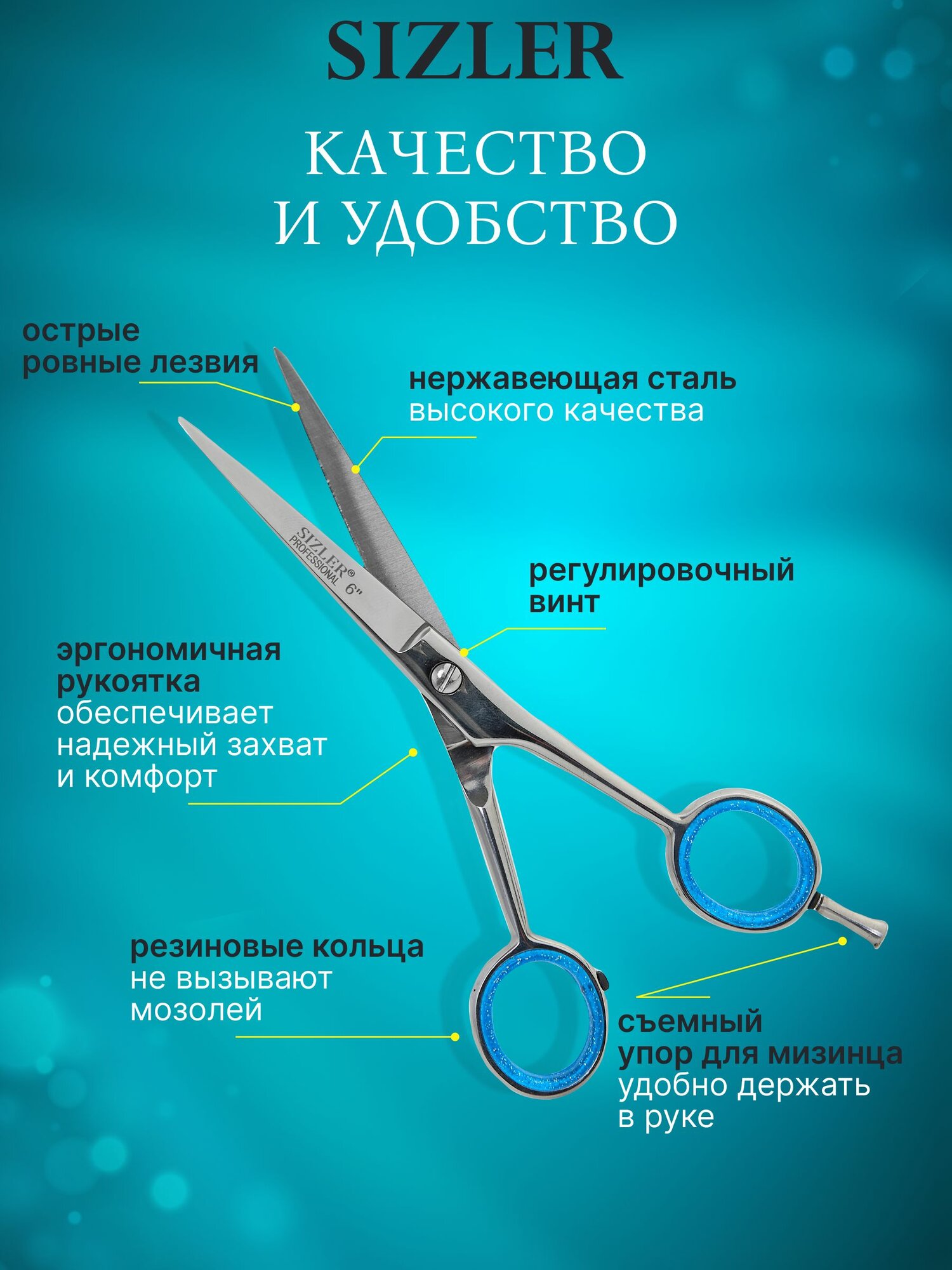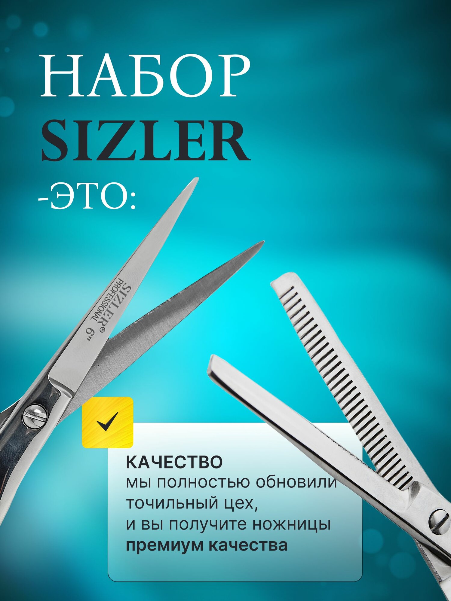 Набор парикмахерский SIZLER PROFESSIONAL ножницы прямые 6см и филировочные интересное: