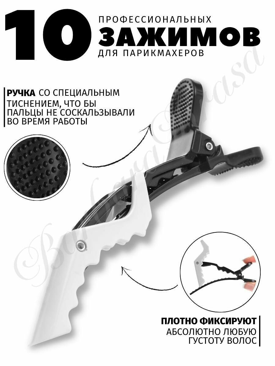 Зажимы для волос карбоновые парикмахерские Крокодил - Уточка карбон пластик черно-белый интересное: