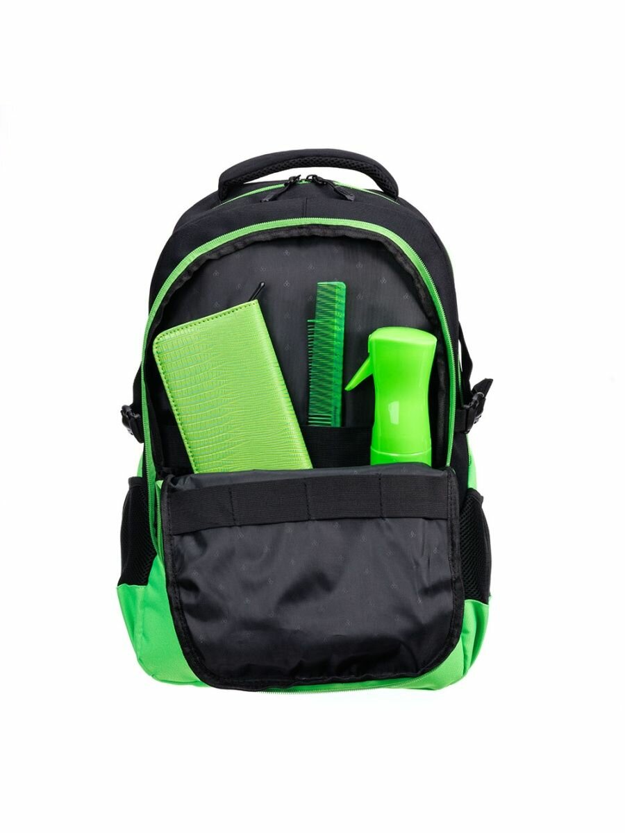 Рюкзак для парикмахерских инструментов DEWAL PRO BARBER STYLE, черно-зеленый, полиэстер, 46x32х18 см GP18016