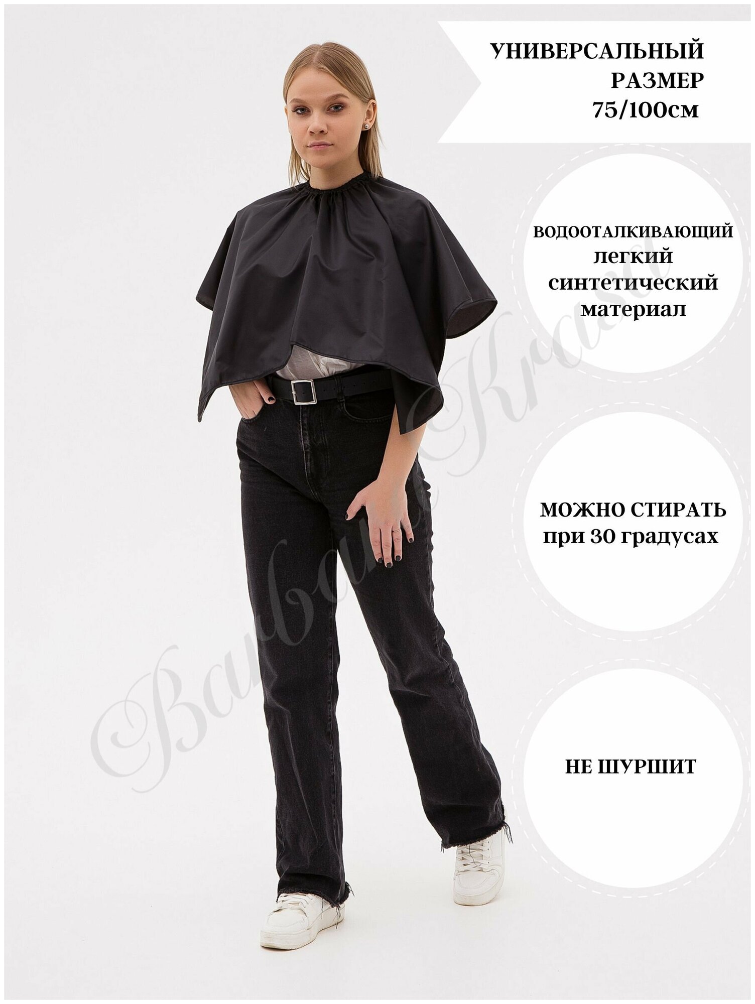 Купить Пелерина для окрашивания и стрижки парикмахерская 75/100 см черная Barbara Krasa