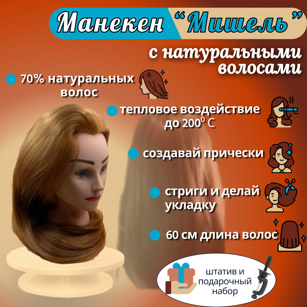 Голова манекена учебная. Русая 70% натуральная
