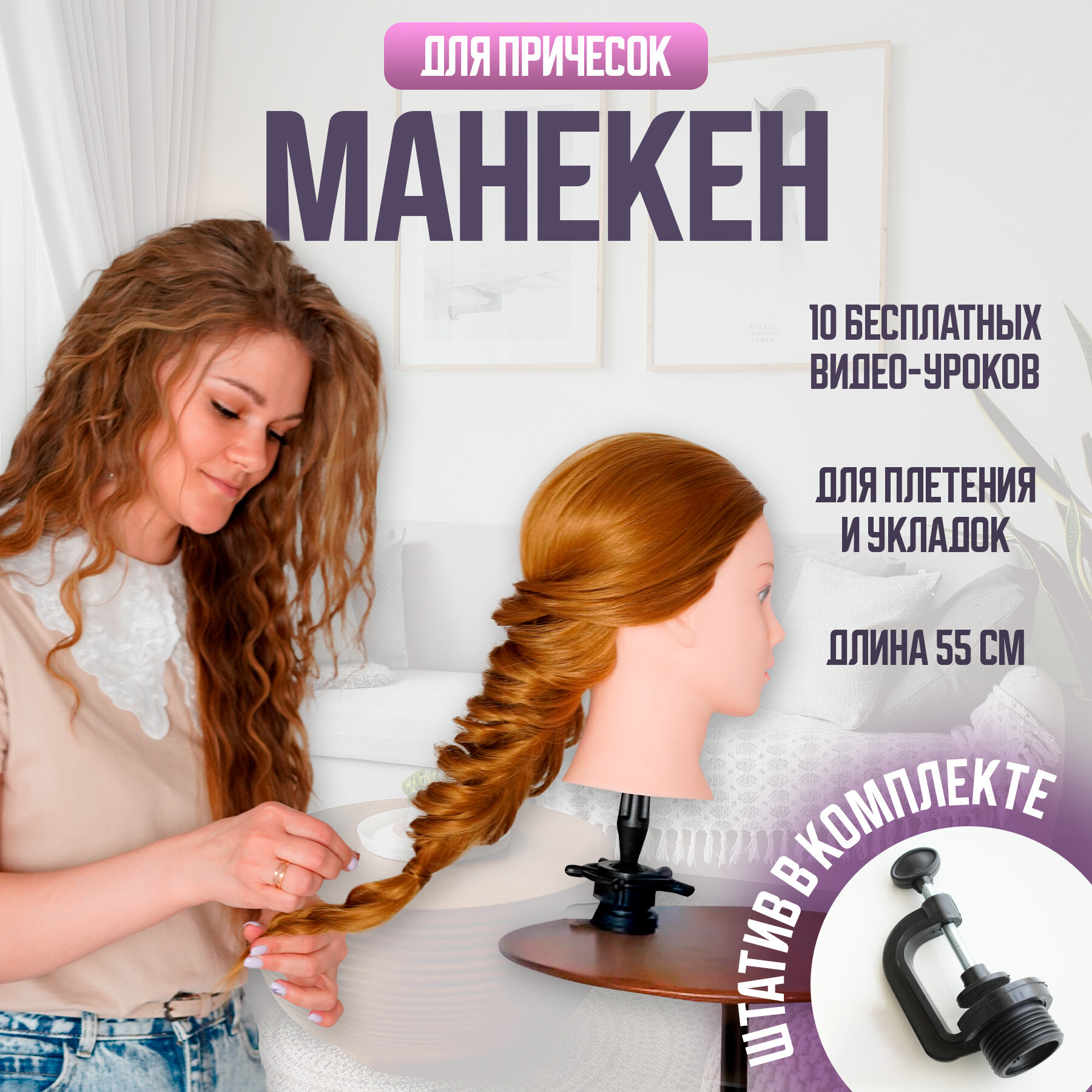 Манекен для причесок Роксана, учебная голова для причесок + курс по обучению плетению кос 10 уроков интересное: