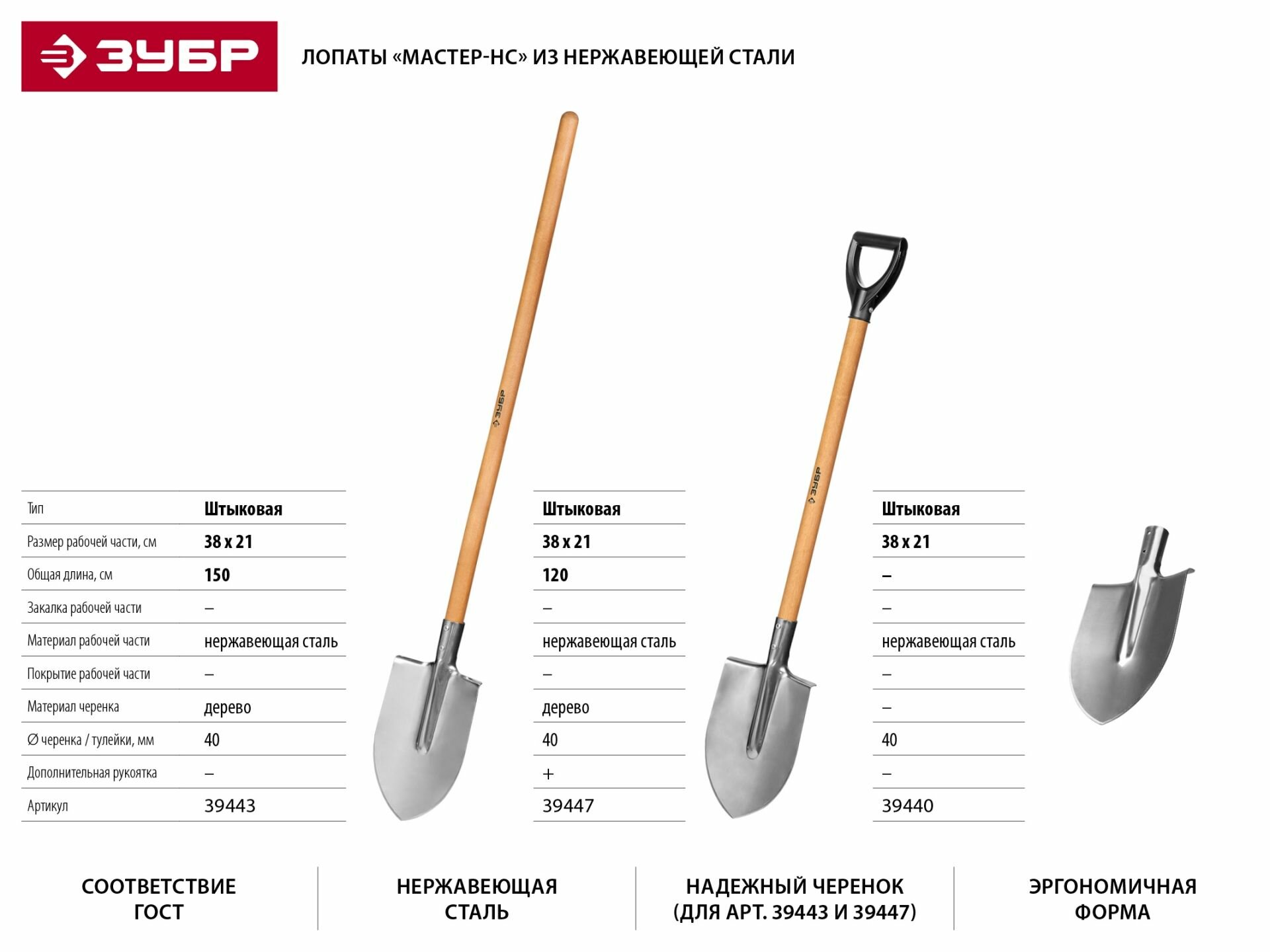 ЗУБР Мастер-НС без черенка, из нержавеющей стали, Штыковая лопата (39440)