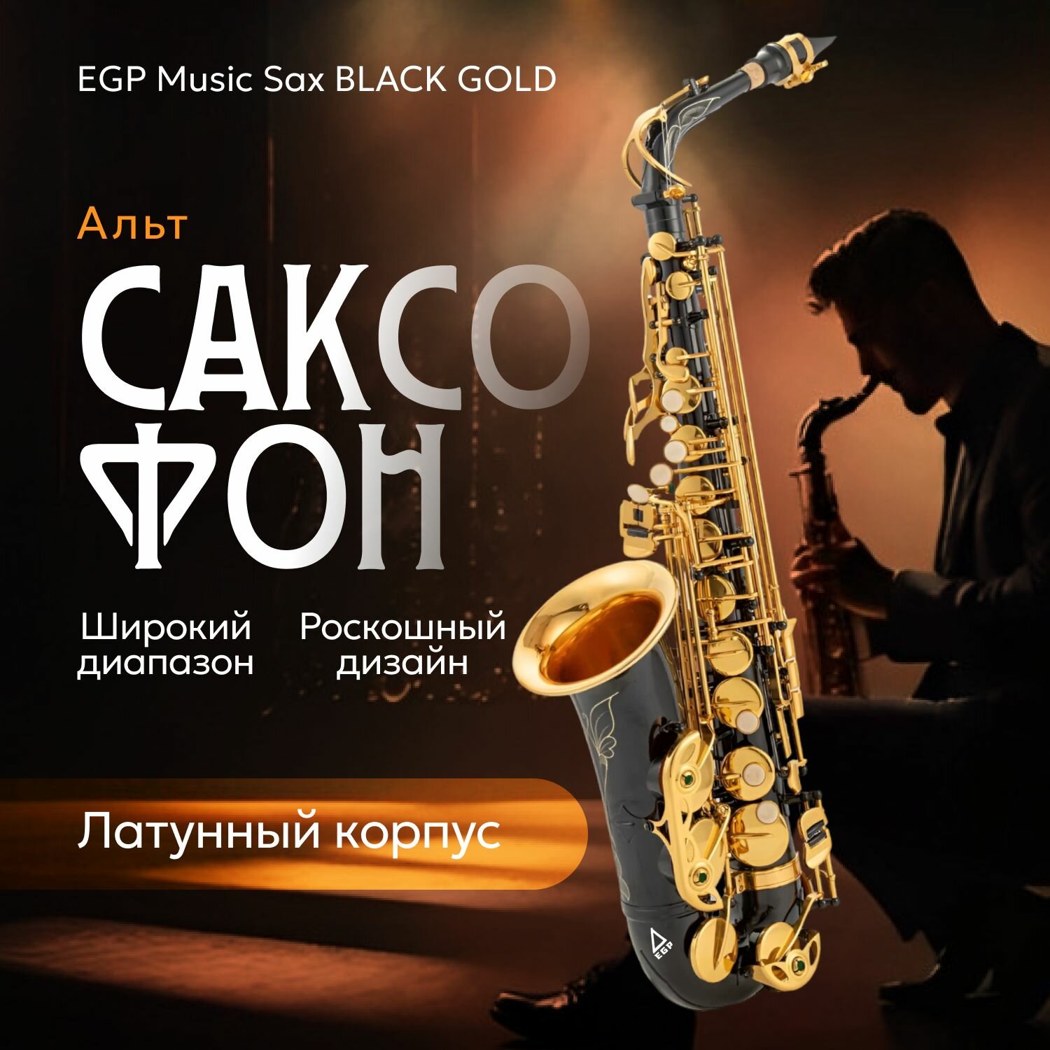 Альт-саксофон EGP Music Sax BLACK GOLD латунь / Духовой инструмент EGP с чехлом интересное: