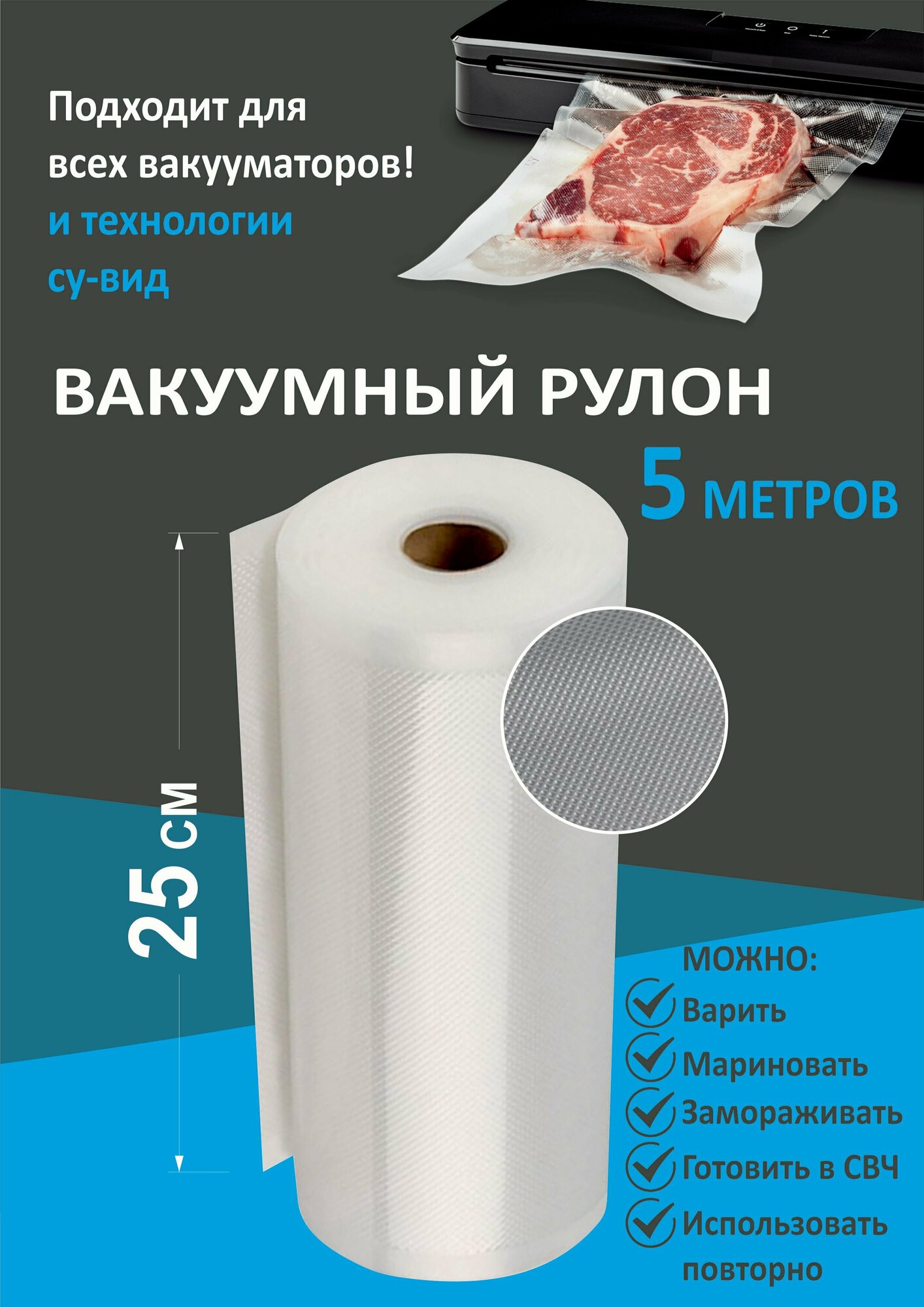 Рифленый вакуумный пакет в рулоне 25х500 см/ пакет для сувид/пакеты для вакууматора интересное: