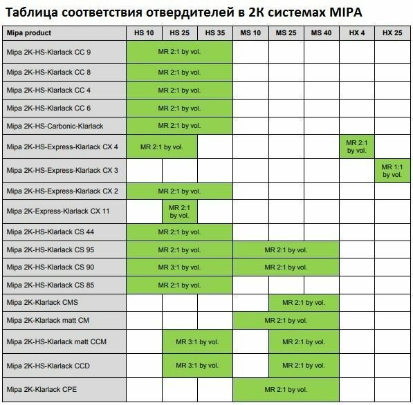 Лак Mipa CC9 HS-Klarlack (1л+0.5л) в комплекте с отвердителем HS25 интересное: