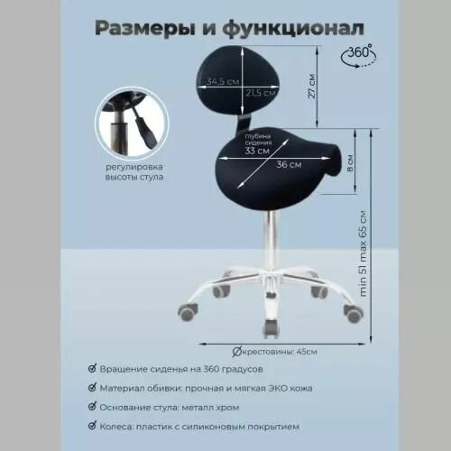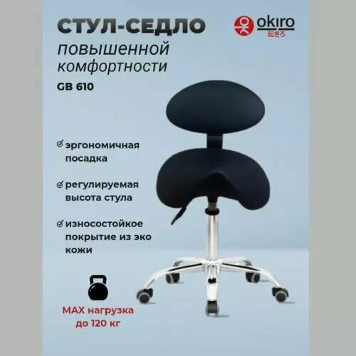 Стул седло на колесах GB 610 черный , стул мастера со спинкой, стул для парикмахера, косметолога, визажиста интересное: