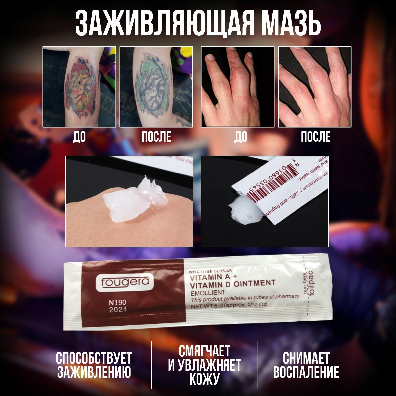Заживляющая пленка для тату самоклеющаяся 20см х 2м и заживляющая мазь с витаминами А и D интересное: