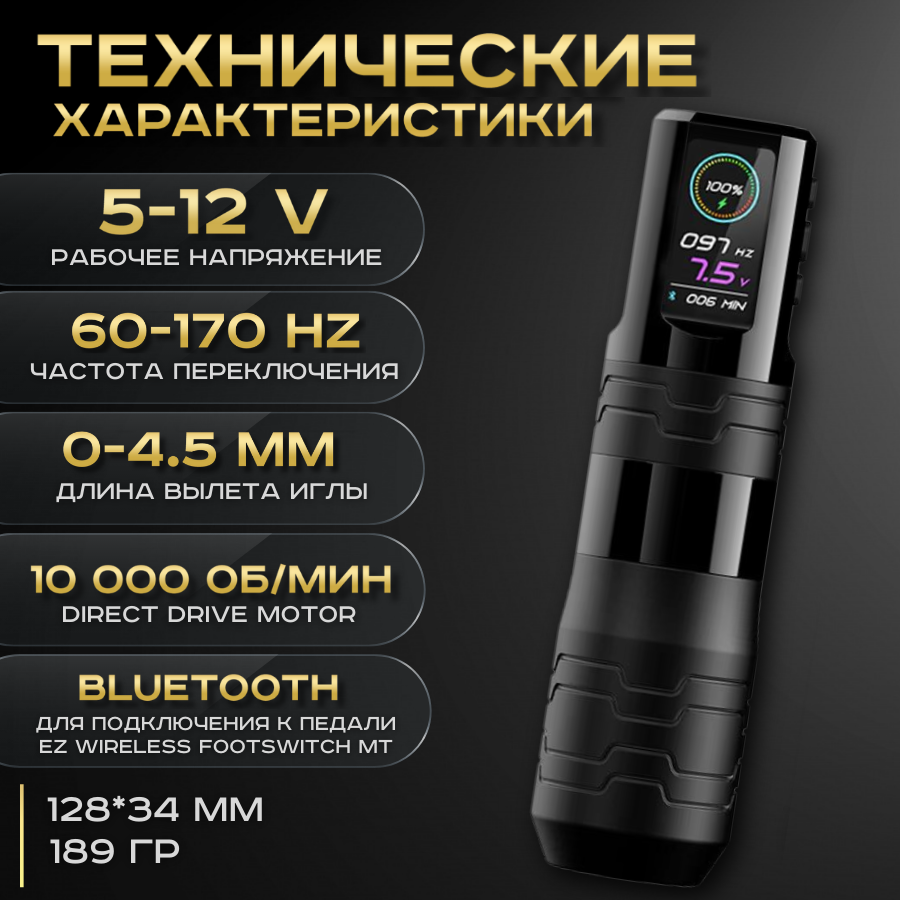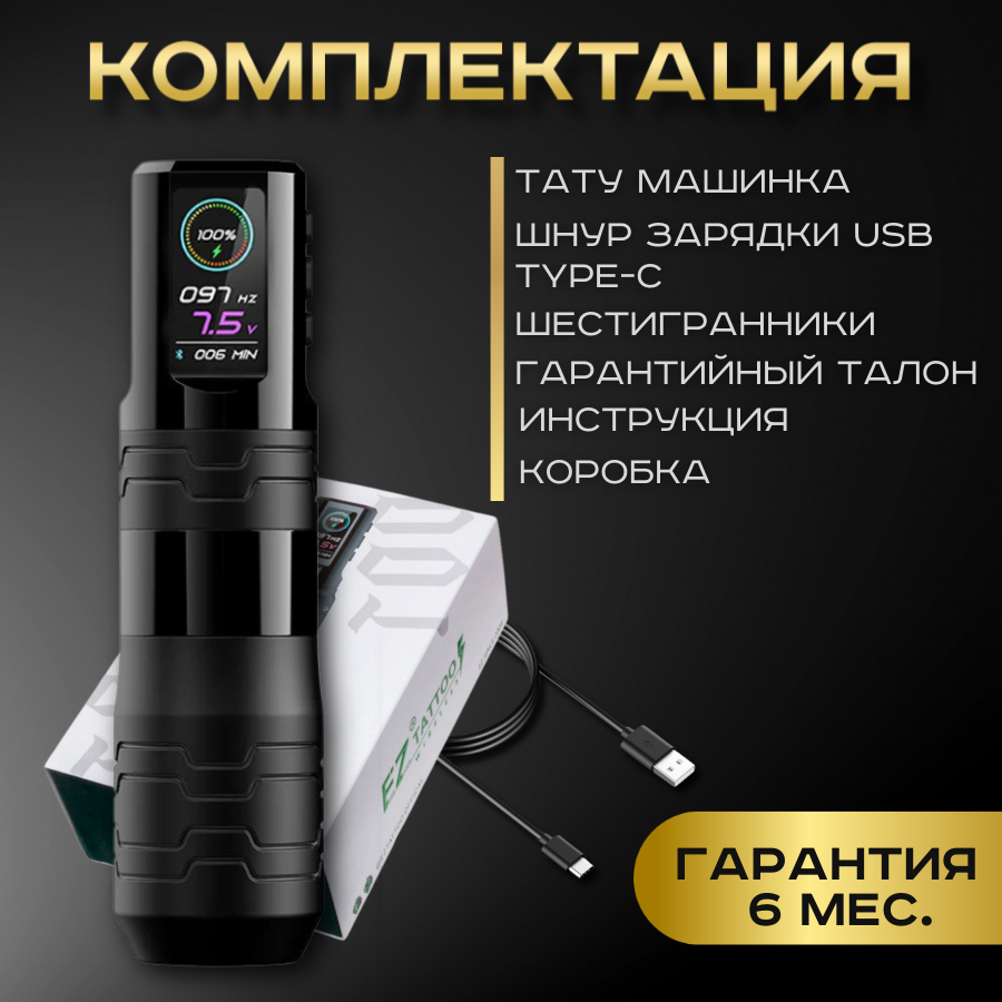 СохранитьБеспроводная тату машинка EZ P3 Pro Turbo Black с регулируемым ходом иглы, черная интересное: