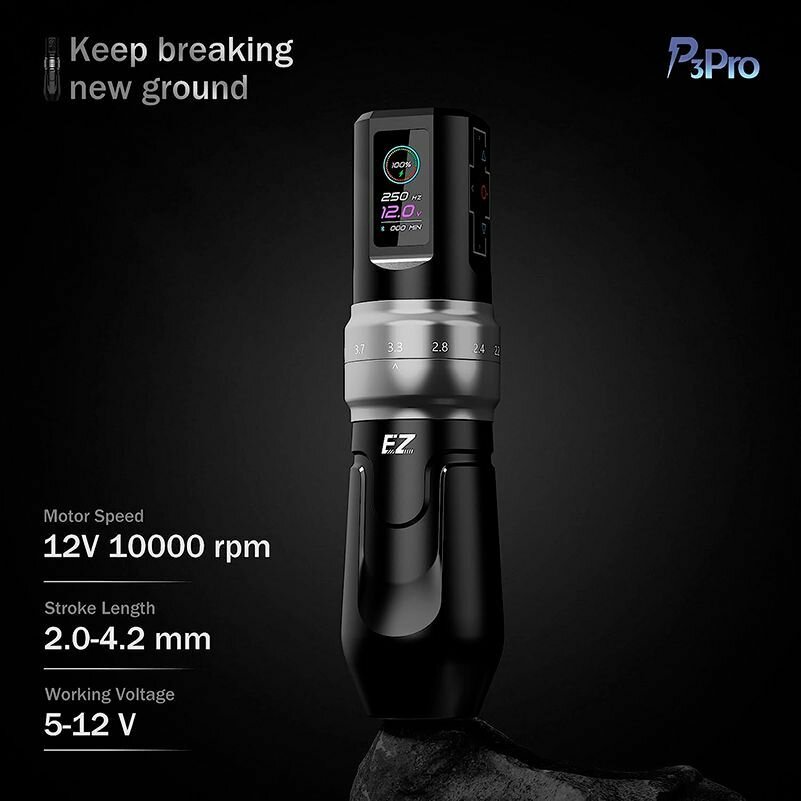 Беспроводная машинка для тату и татуажа c 6-ю режимами переключения хода EZ P3 Pro x2 Power Matte Black