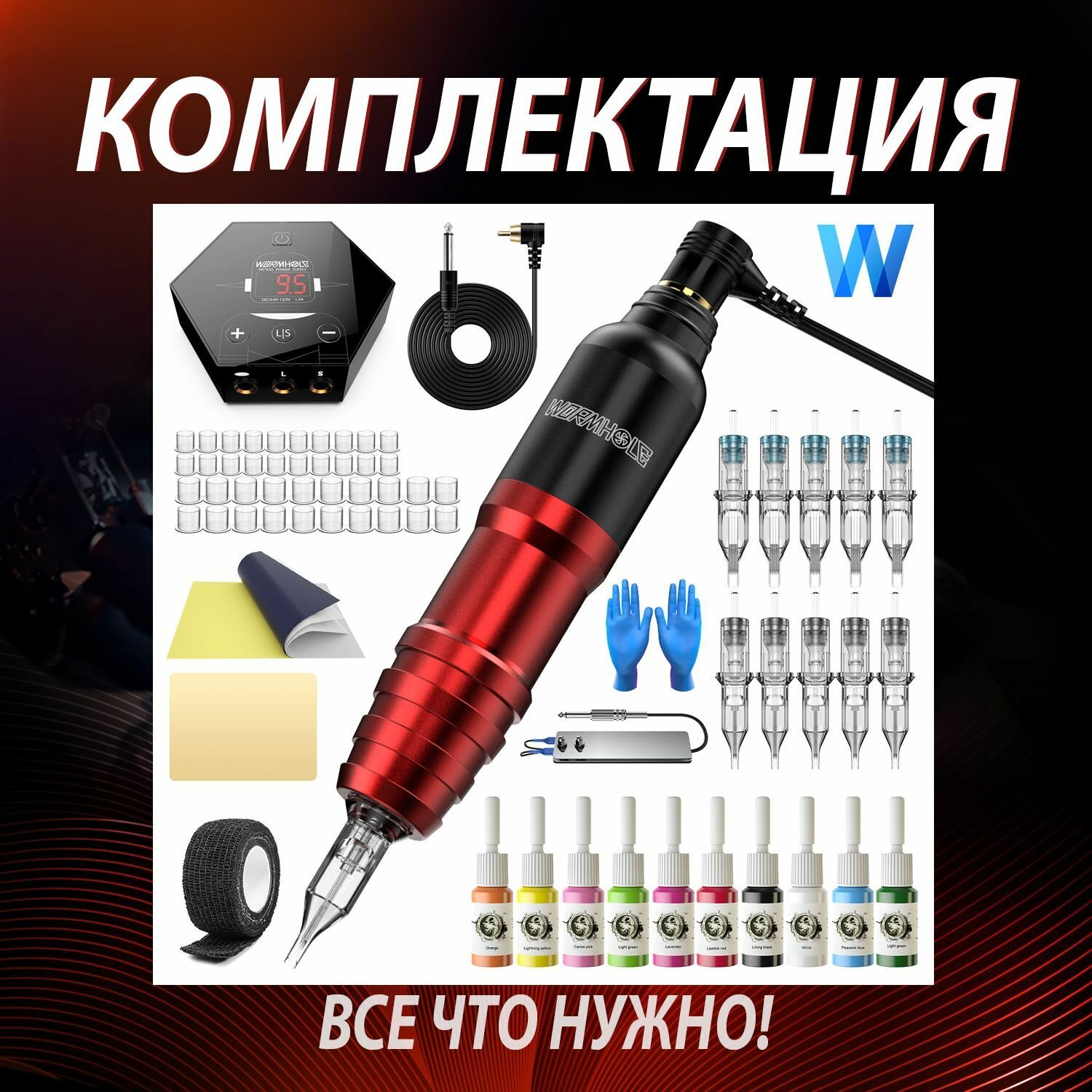 | Комплектация | В комплект входит: Силовое оборудование: Тату машинка для татуировки (порт RCA)- 1 шт. мини-блок питания для татуировки -1 шт. Клип-Корд RCA -1 шт. ножная педаль- 1 шт. Расходные материалы: 10 шт - картриджей с иглами для татуировки (разной конфигурации). 10 шт - чернил для татуировки по 5 мл. 20 шт - колпачков с чернилами для татуировки. 1 шт - Универсальная трансферная бумага для татуировки 1 шт- кожа для практики татуировки 1 пара синих нитриловых перчаток 1 шт- бандажная лента. 1 шт- Барьерная защита на клип-корд. |