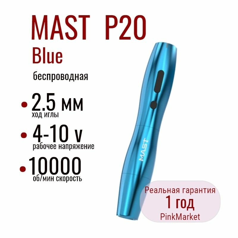 Тату машинка беспроводная Mast P20 Wireless Blue роторная Dragonhawk интересное: