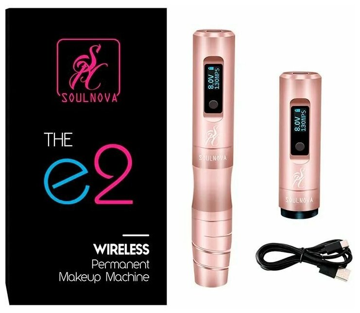 Беспроводная машинка для татуажа и перманентного макияжа с 2-мя мощными аккумуляторами AVA SOULNOVA E2 PMU PEN Champagne интересное: