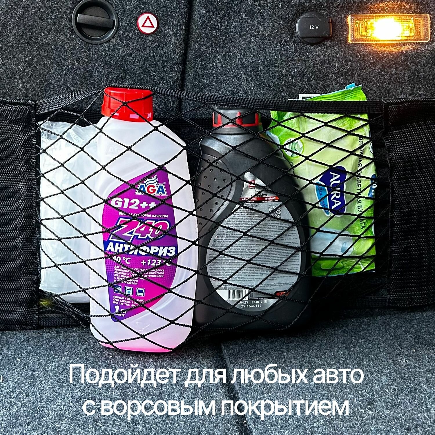 Карман в багажник на липучке универсальный / сетка органайзер в автомобиль / держатель крепление в машину