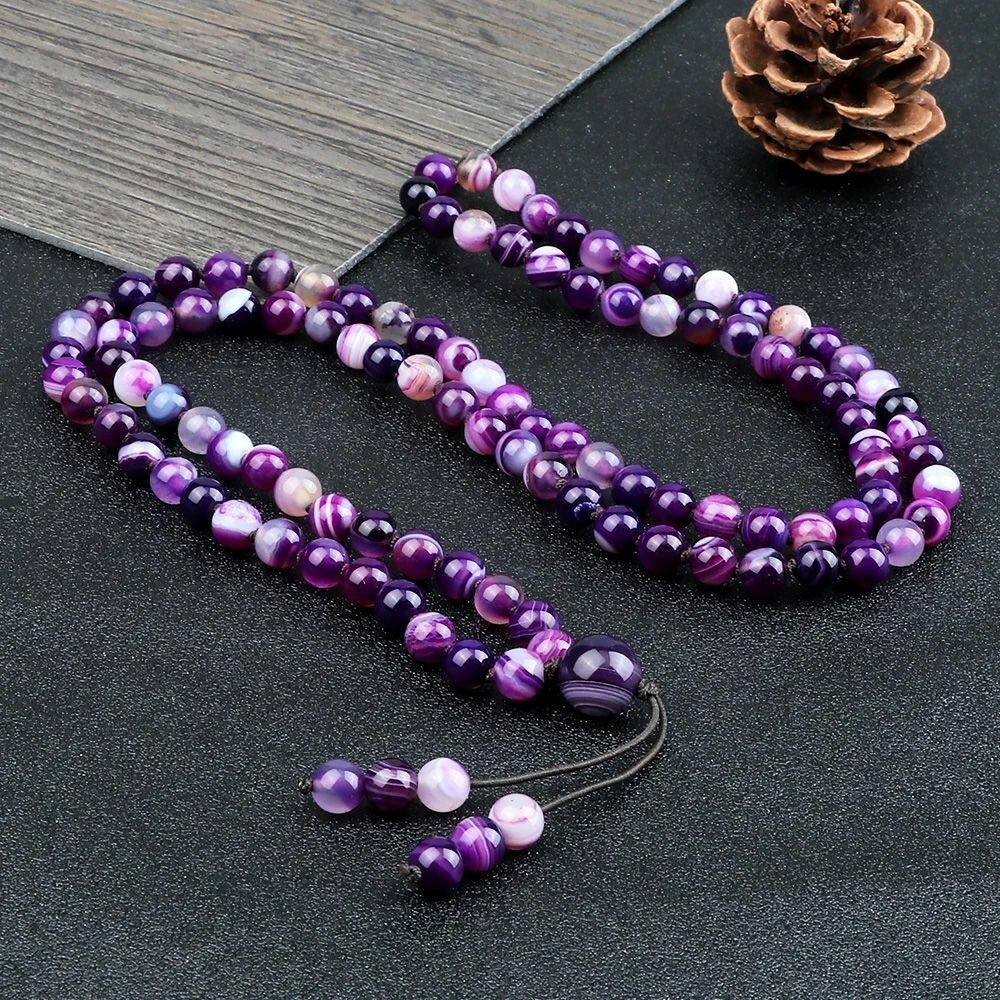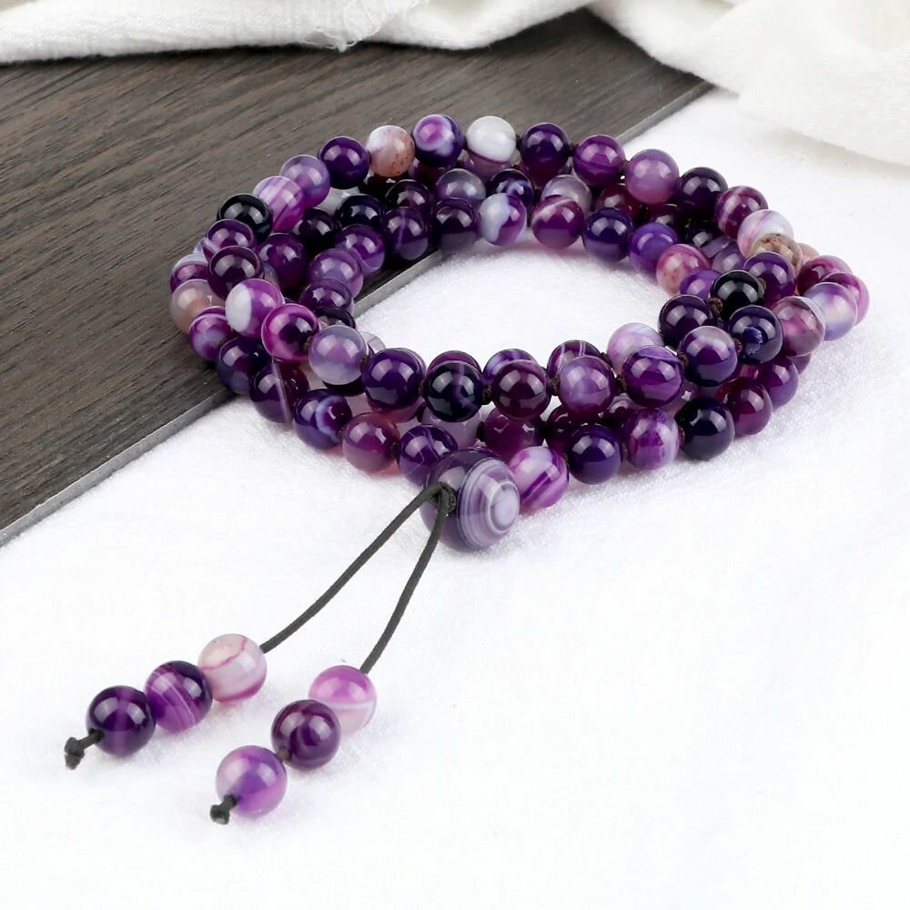 Купить Четки Tasyas Фиолетовый Агат 108 бусин на нити Ø6 мм камень