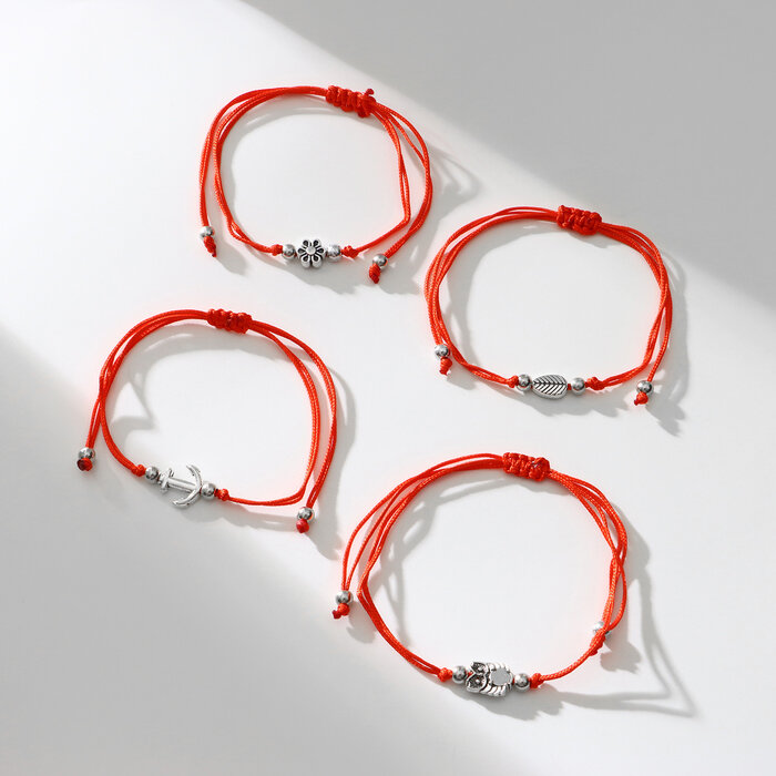 Браслет-оберег «Красная нить» Happy family любим друг друга, набор 4 шт., цвет серебро, d=5,5 см