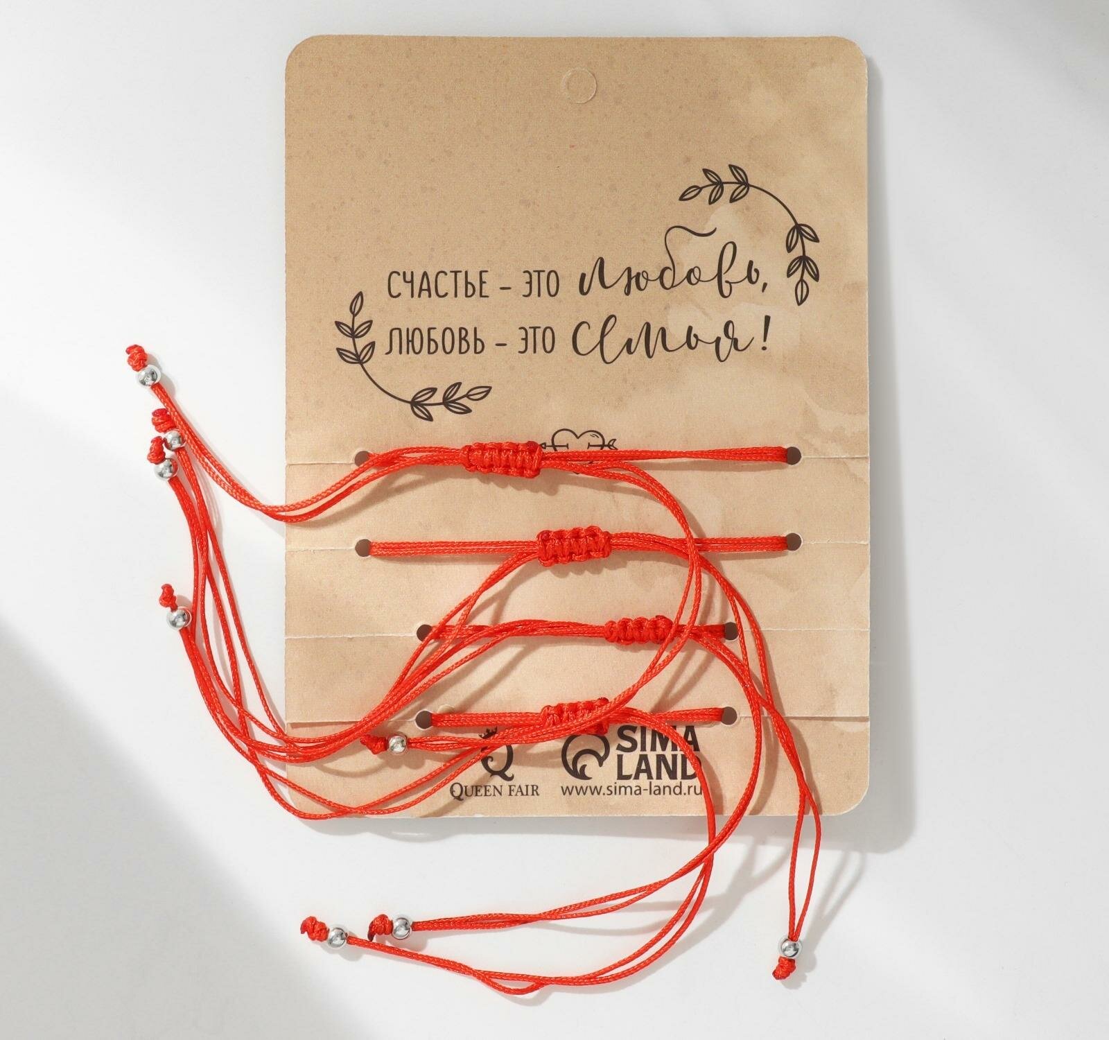 Купить Браслет-оберег "Красная нить" Happy family любим друг друга, набор 4 шт, цв сереб,d=5,5см 3978210