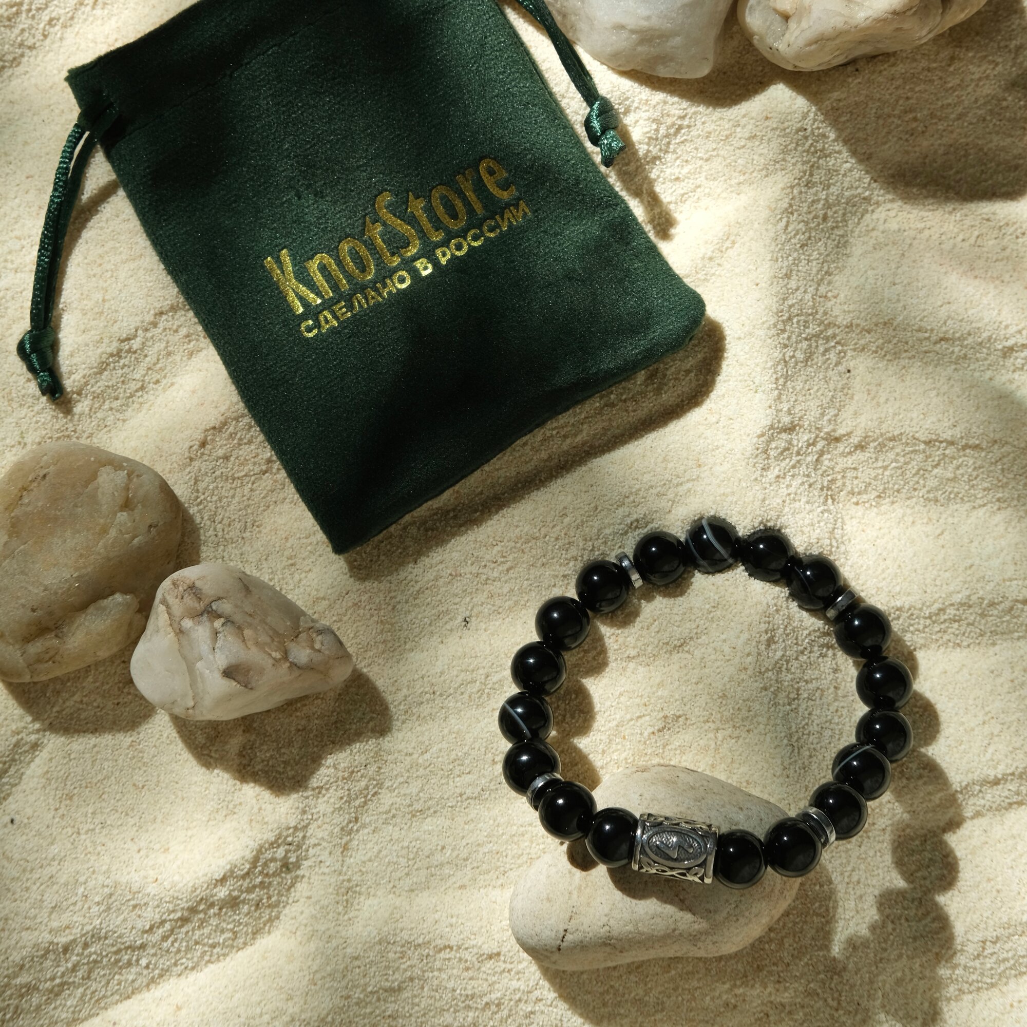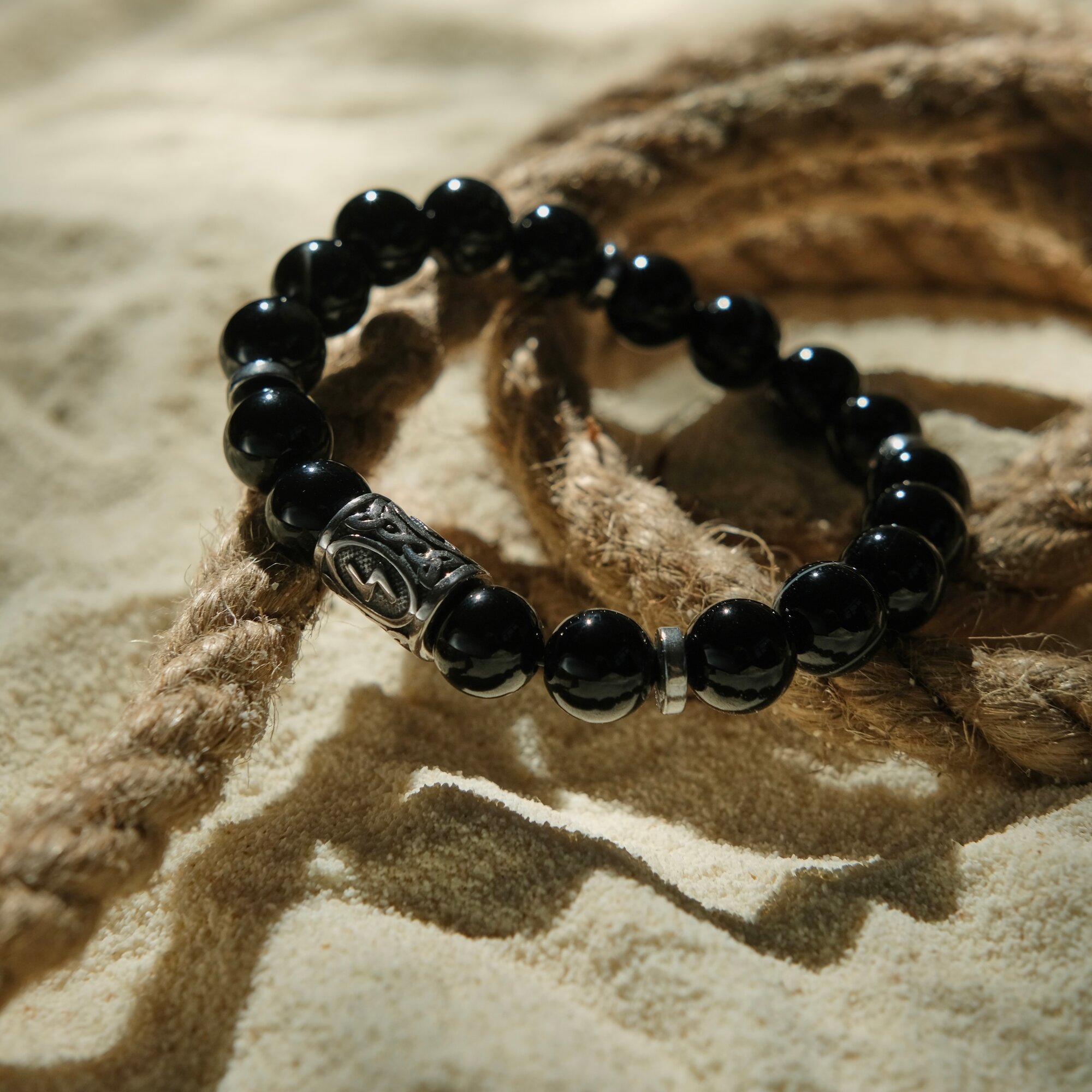 Купить Мужской браслет "Рунический браслет Сила" с натуральным черным агатом