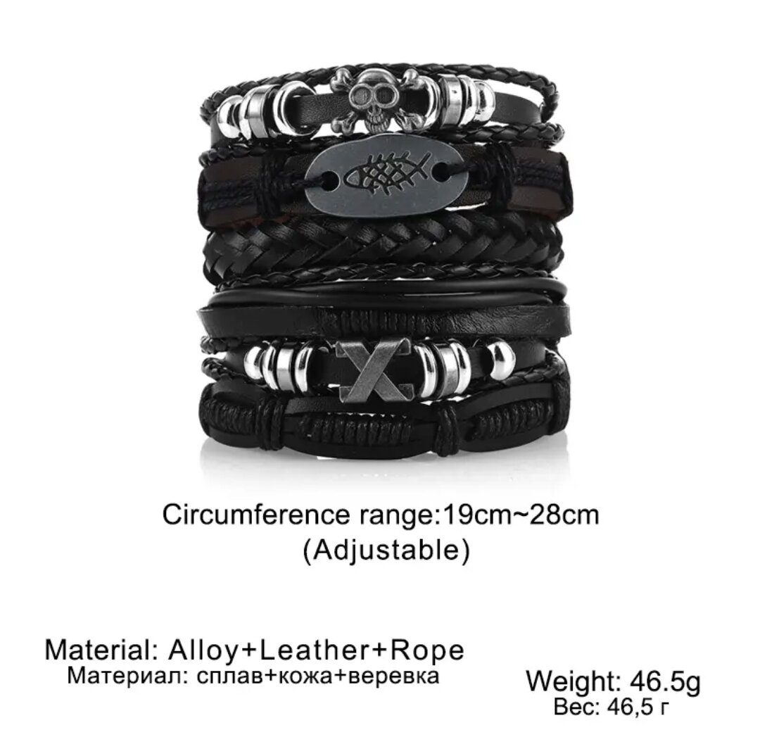 | Дополнительная информация | Браслет на завязках безразмерный, кожаный, бижутерия, украшение на руку, комплект\набор 5 в 1 |