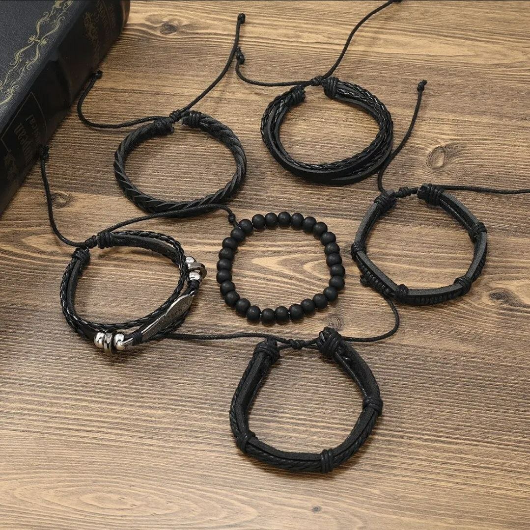 | Дополнительная информация | Браслет на завязках безразмерный, кожаный, бижутерия, украшение на руку, комплект\набор 5 в 1 |