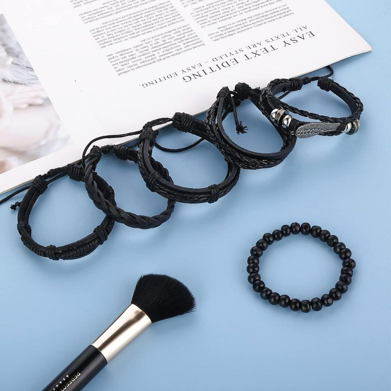 Браслет на руку на завязках 5 в 1 плетеный, унисекс, мужской/женский/для подростков, черный/коричневый