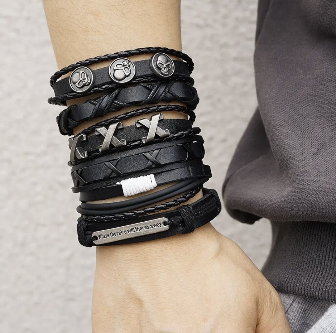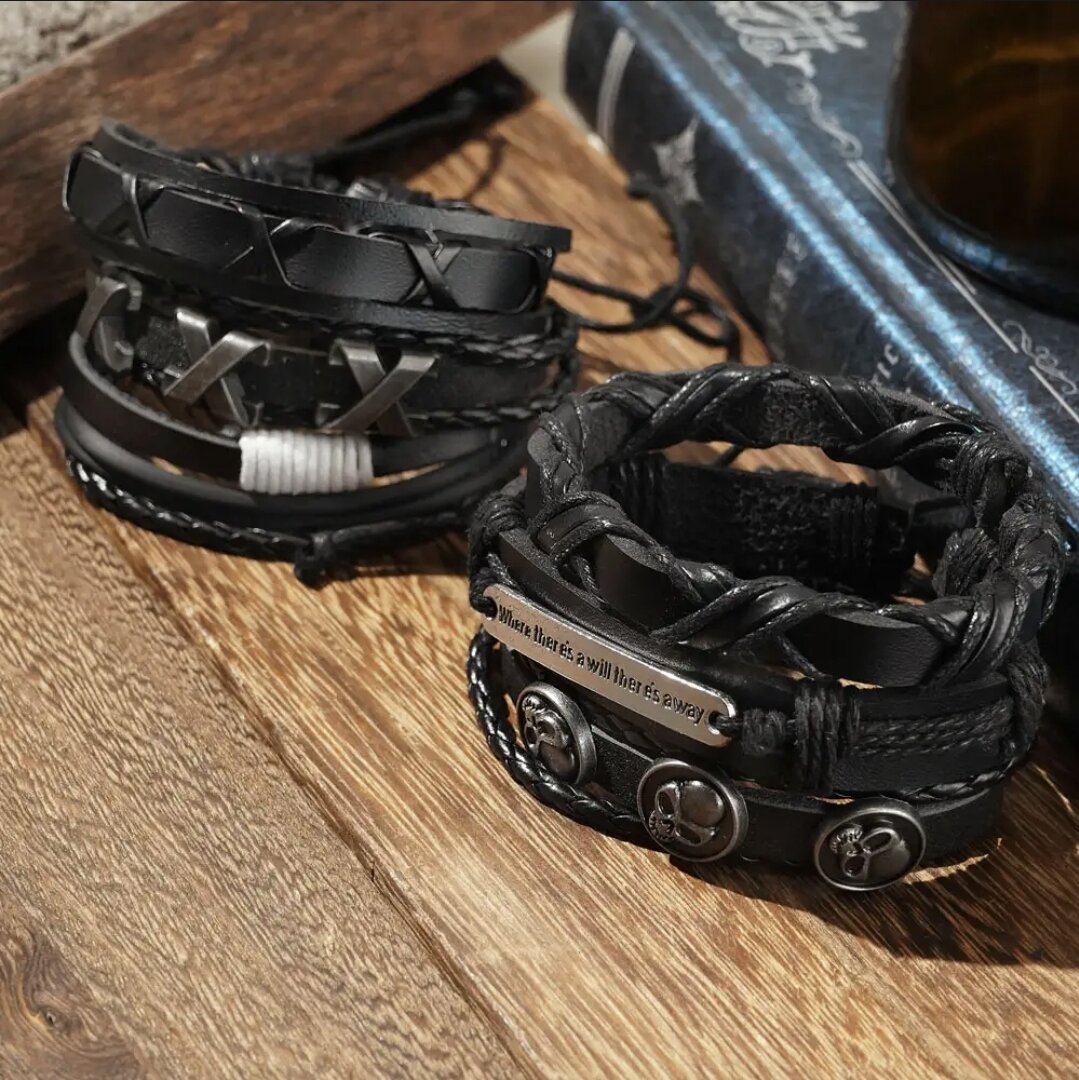 | Дополнительная информация | Браслет на завязках безразмерный, кожаный, бижутерия, украшение на руку, комплект\набор 5 в 1 |