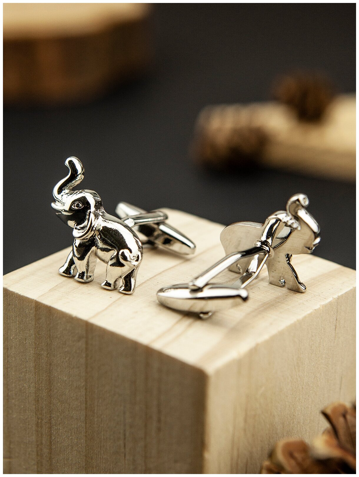 Запонки мужские / женские под серебро Слоны интересное: