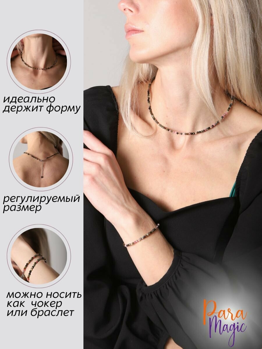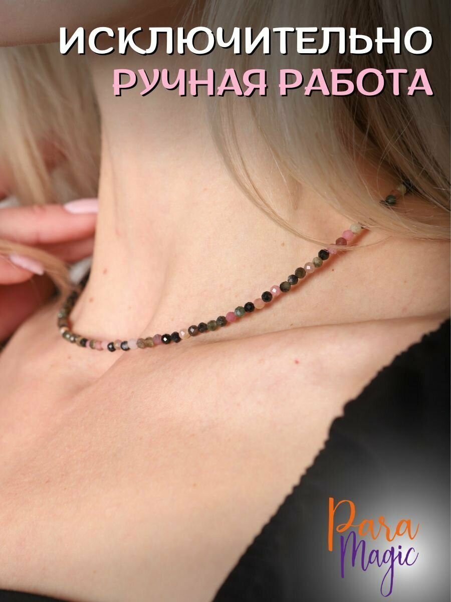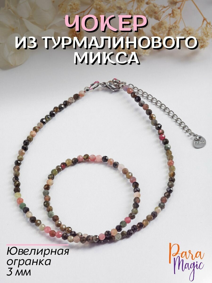 Чокер Турмалиновый микс из натуральных камней на шею, размер бусины 3 мм интересное: