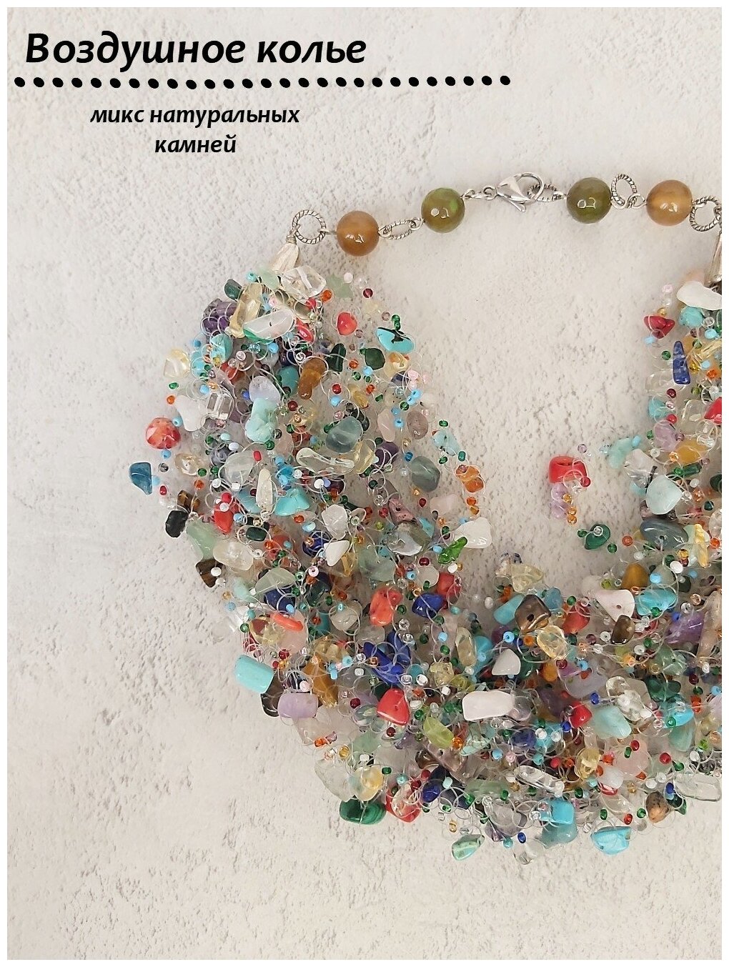 Колье "Воздушное" из микса натуральных камней. Ожерелье, бусы, воздушка из камней интересное: