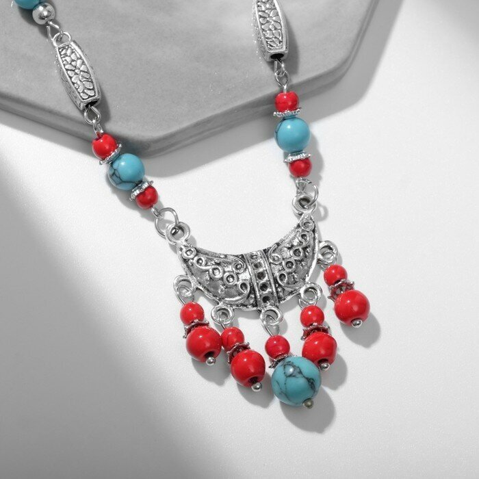 Купить Колье «Индия» бирюзовое счастье, цвет красно-голубой в чернёном серебре, 32 см