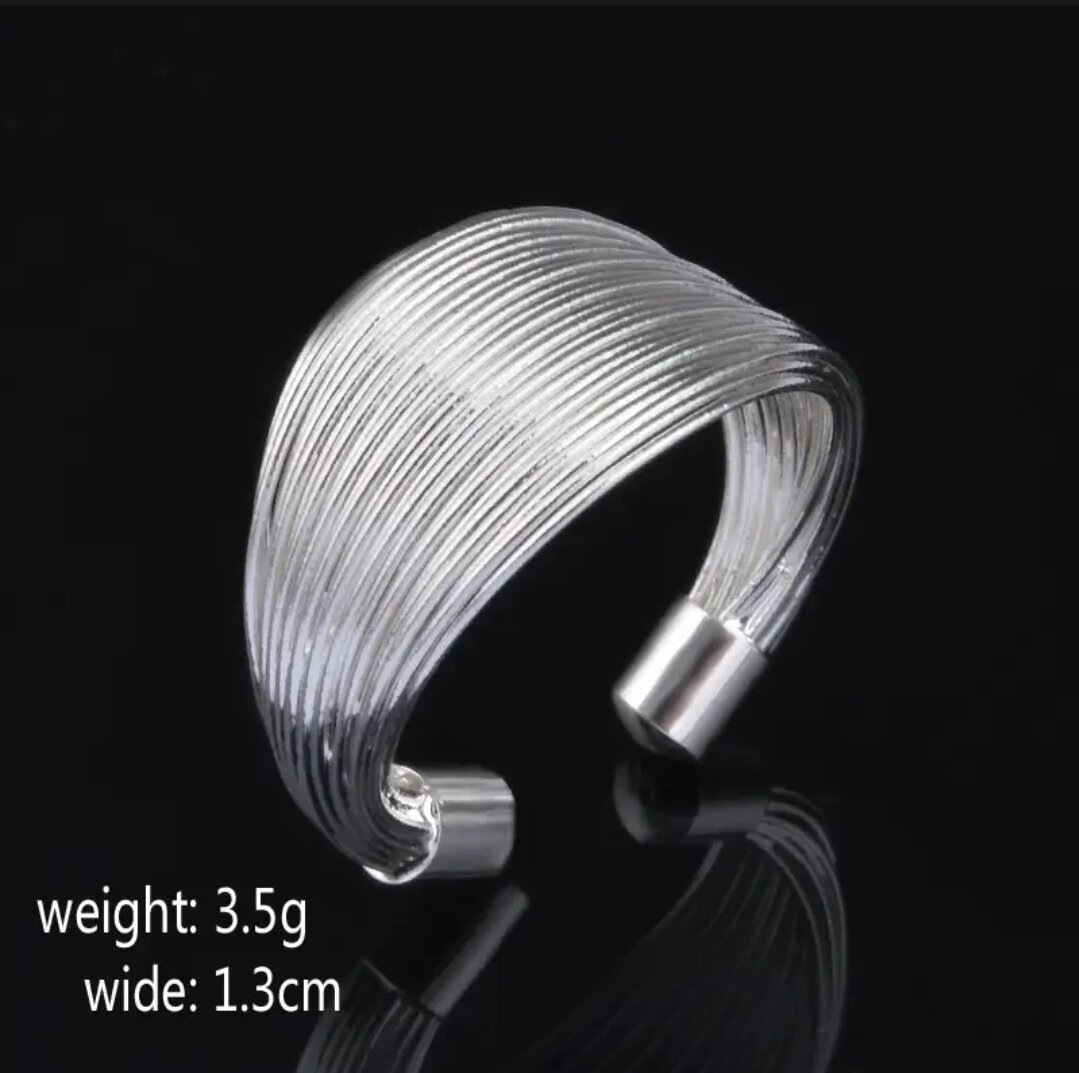 "Музыкальная волна" - женское кольцо безразмерное, серебро, на палец руки