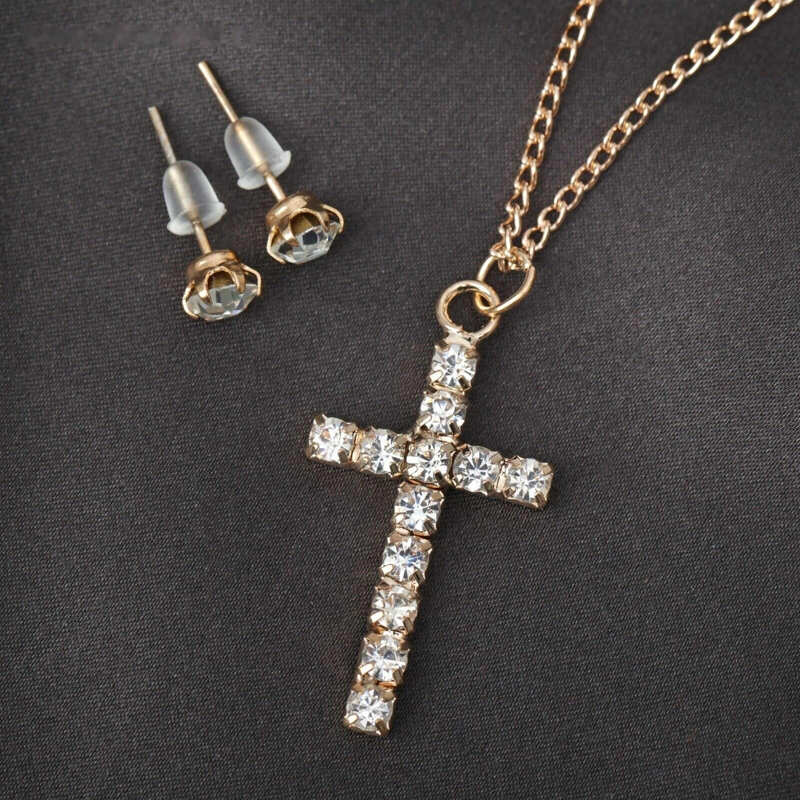 Купить Гарнитур 2 предмета: серьги, кулон «Крестик», цвет белый в золоте, 43 см