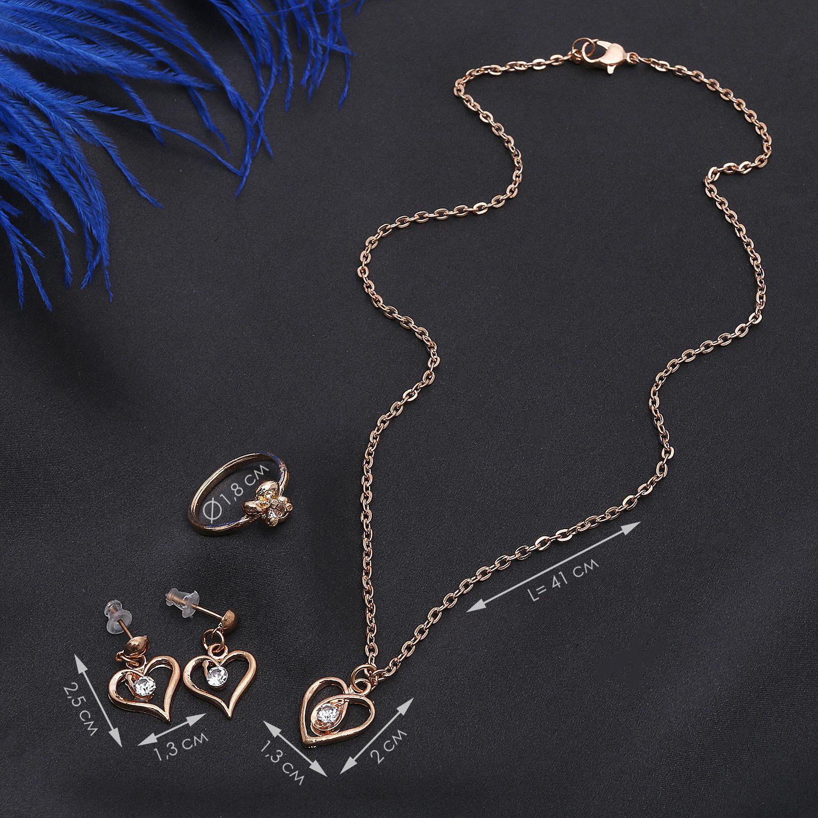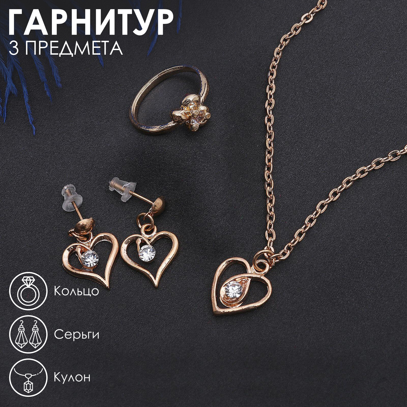 СохранитьГарнитур 3 предмета: серьги, кулон, кольцо, размер микс (16-18) «Сердце», цвет белый в золоте, 40 см 1шт. интересное: