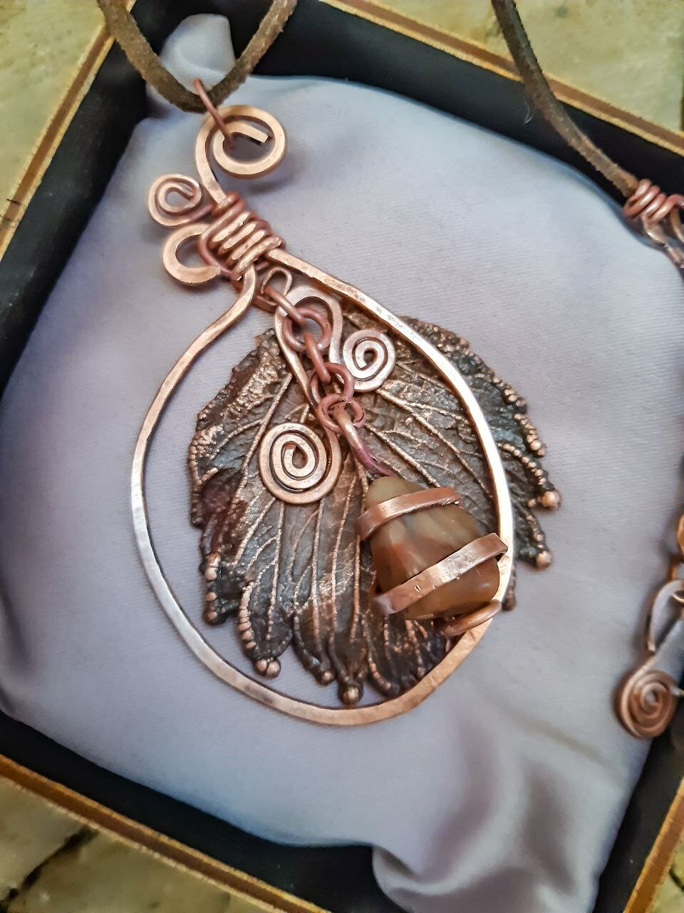 Кулон из листика клубники интересное: