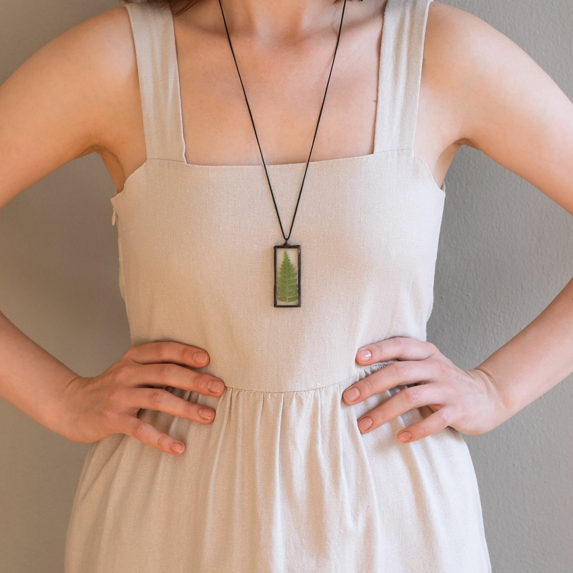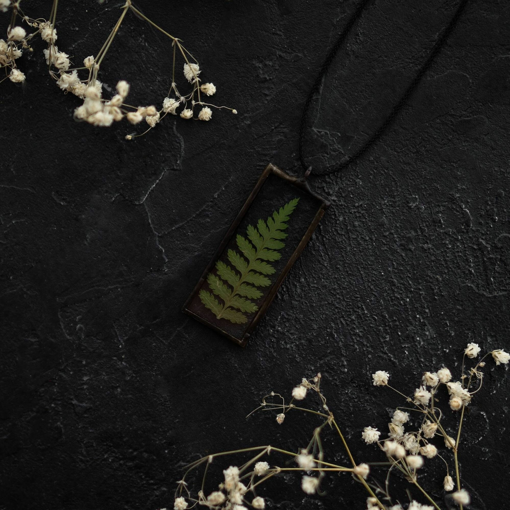 Купить Кулон с сухоцветами "Папоротник" на шнурке "Forget-me-not" / 2*5 см