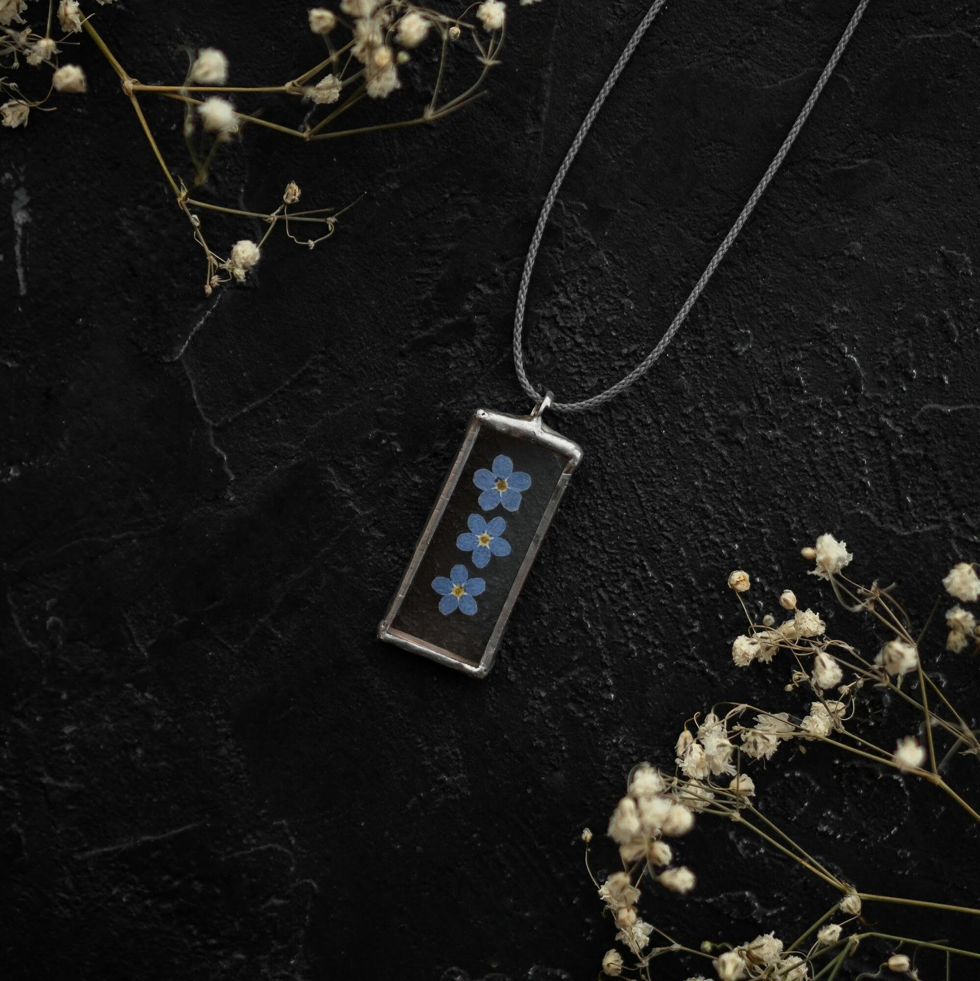 Купить Кулон с сухоцветами "Голубые незабудки" на шнурке "Forget-me-not" / 1,5*3,5 см