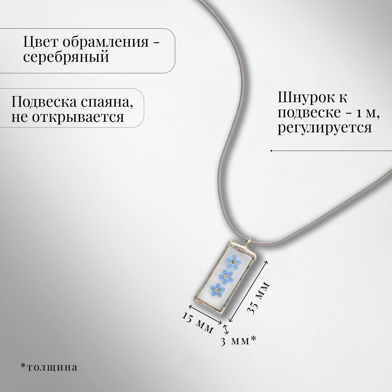 Кулон с сухоцветами "Голубые незабудки" на шнурке "Forget-me-not" / 1,5*3,5 см интересное: