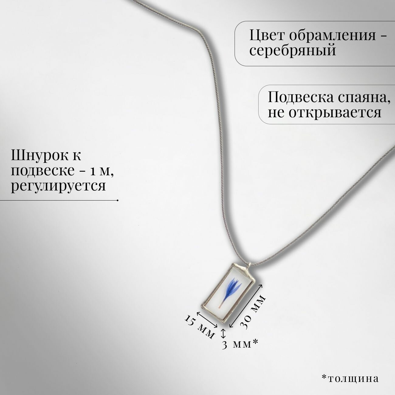 | Комплектация | Подвеска с сухоцветами, Серый шнурок 1 метр |