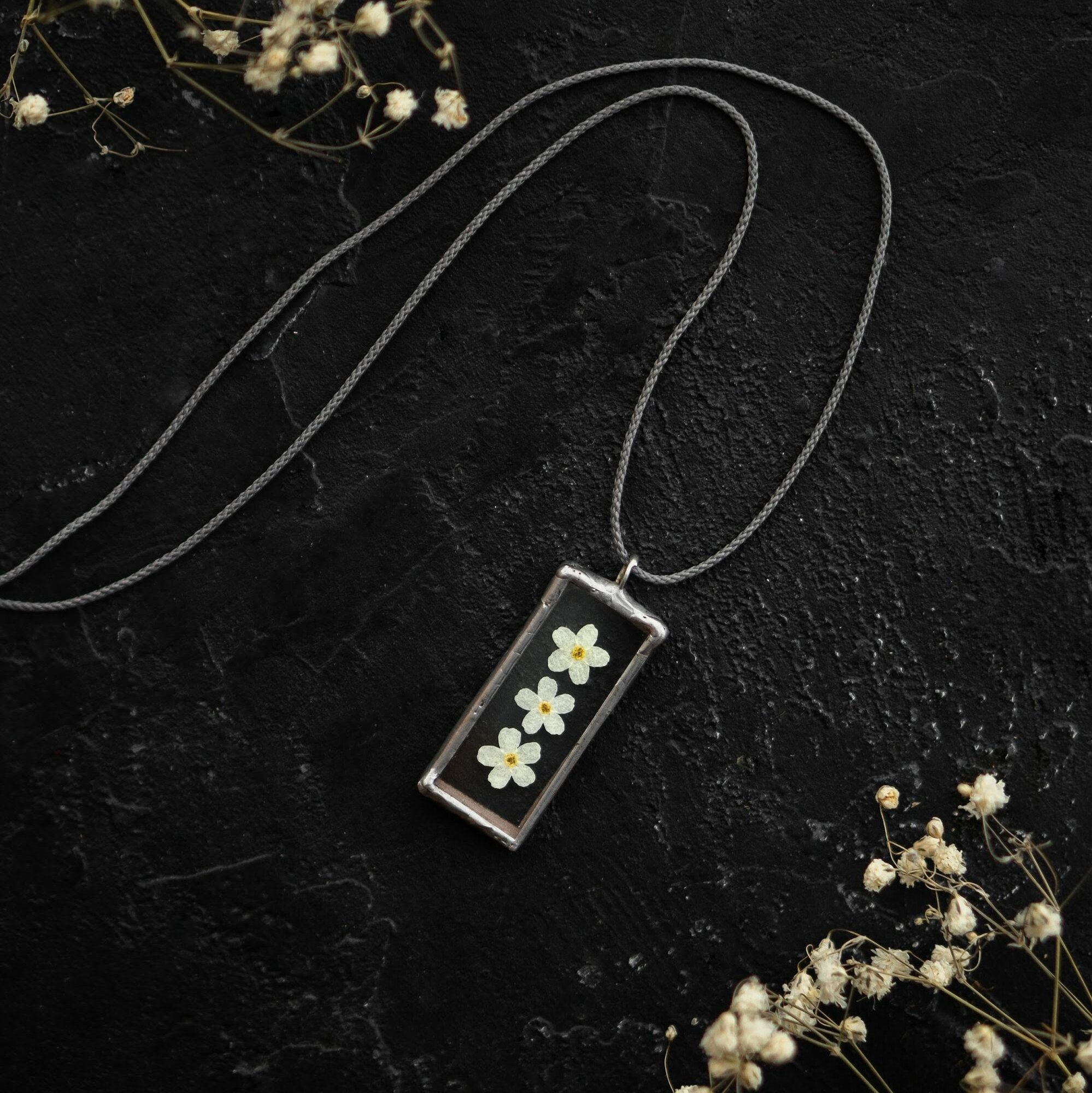 Купить Кулон с сухоцветами "Белые незабудки" на шнурке "Forget-me-not" / 1,5*3,5 см