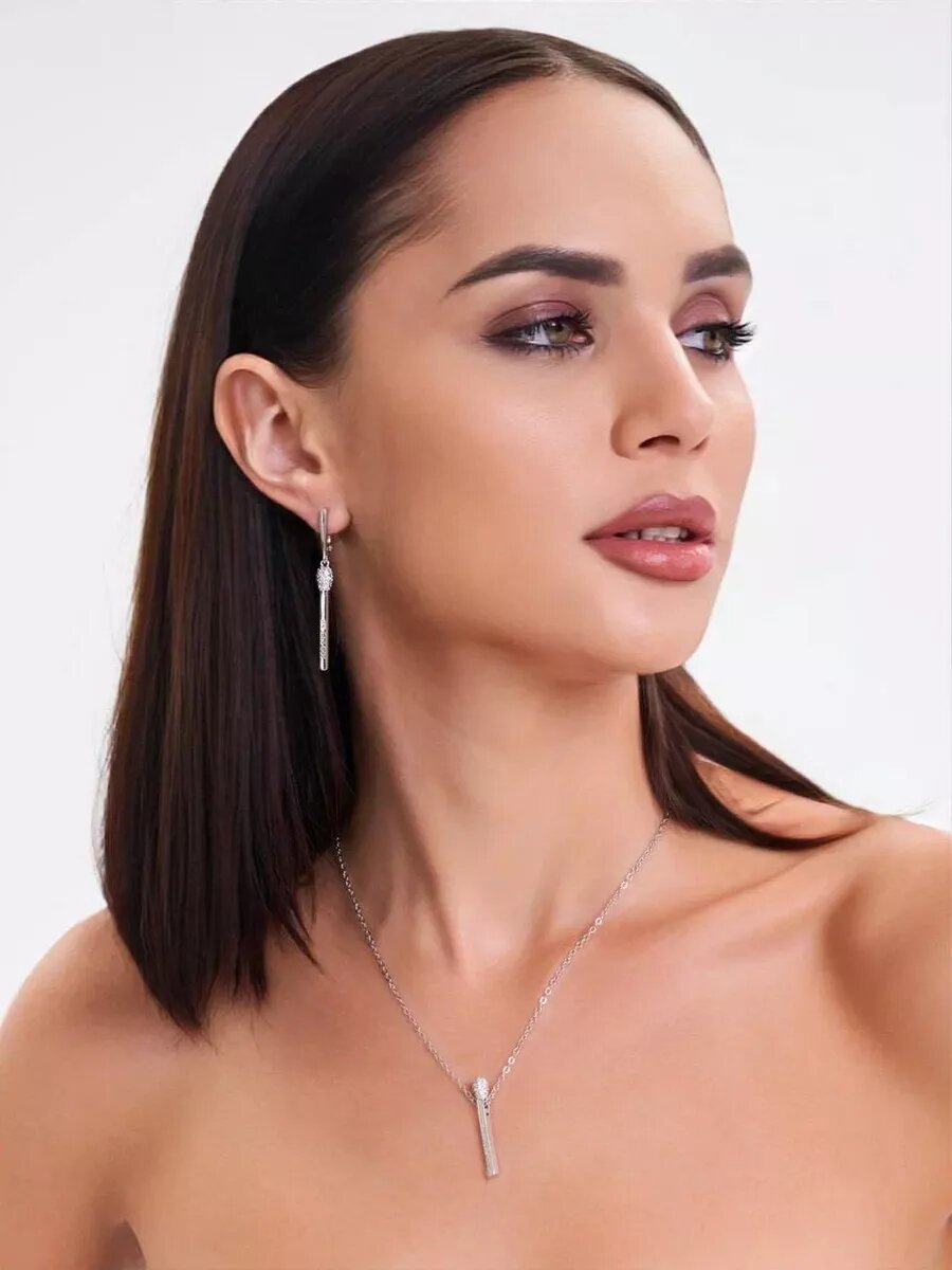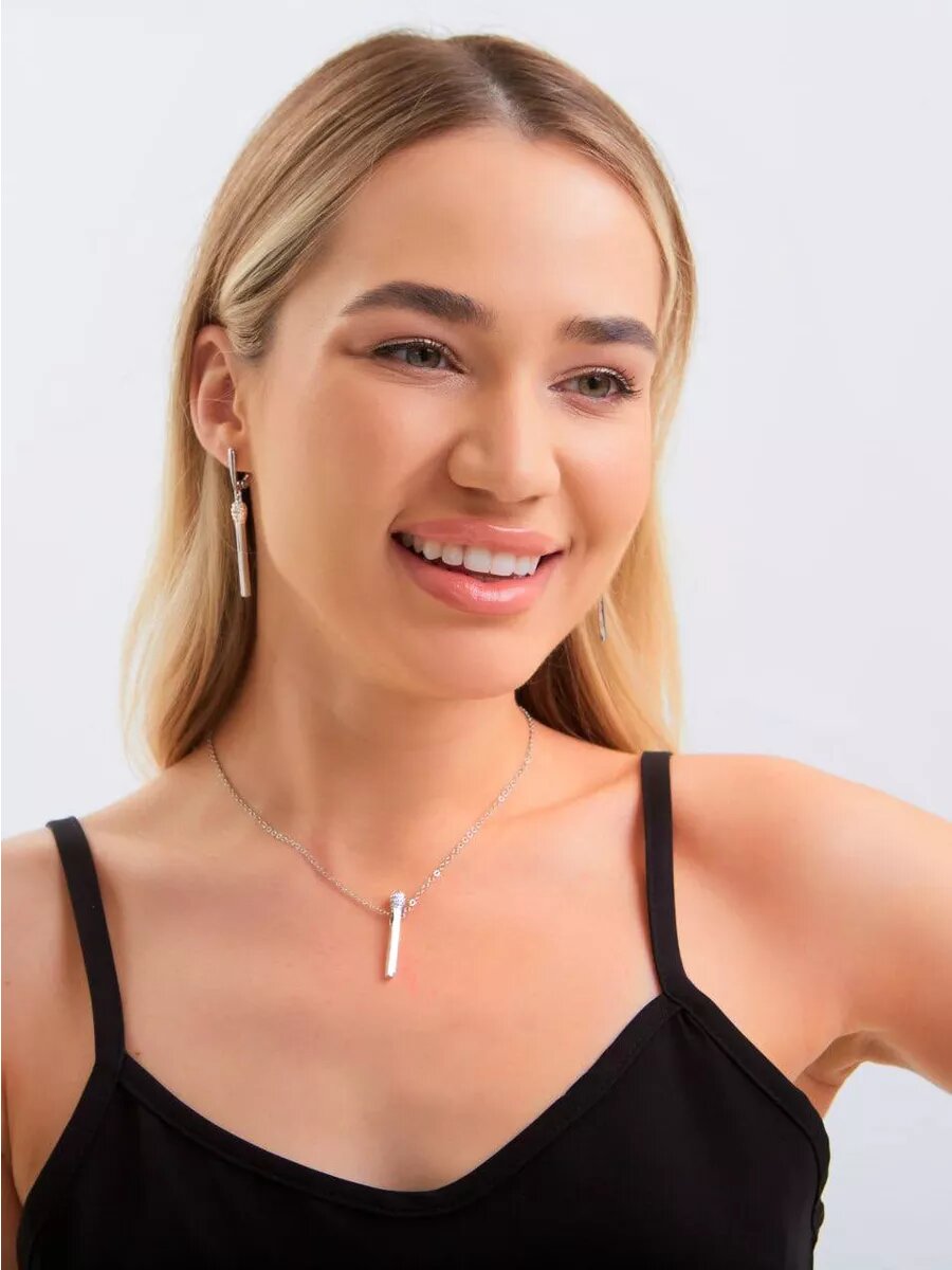 Колье Спичка с камнями серебристое интересное: