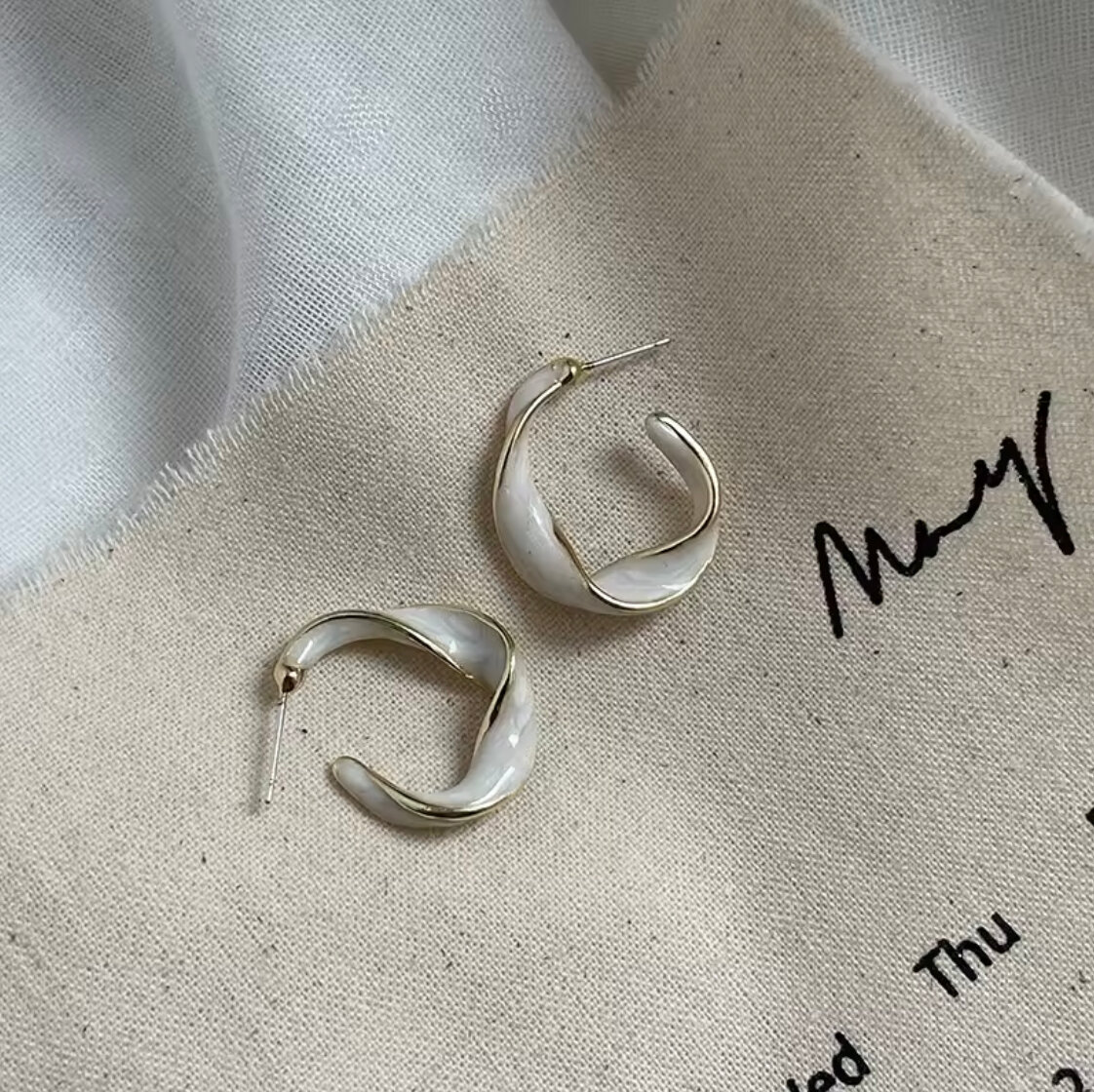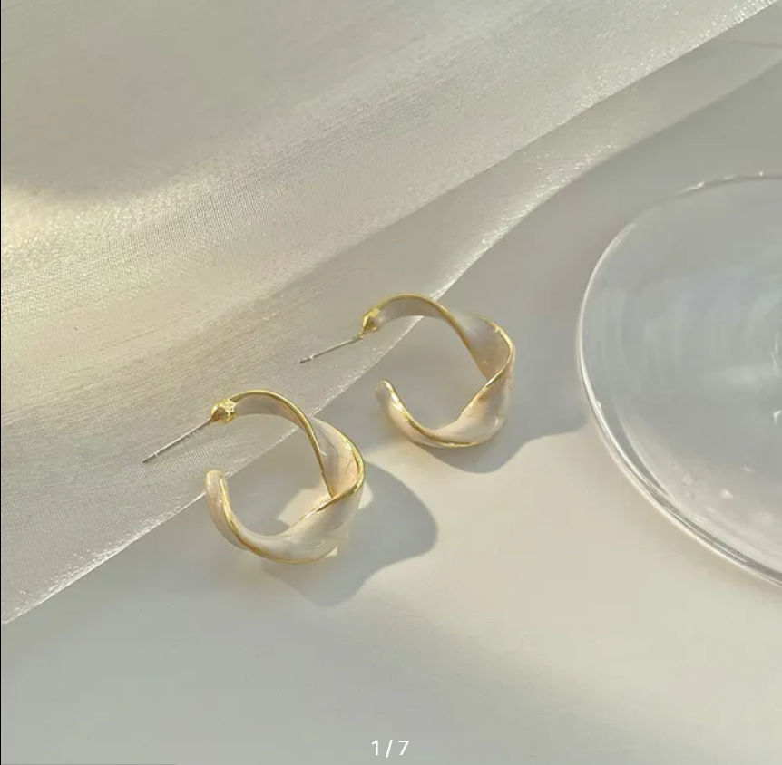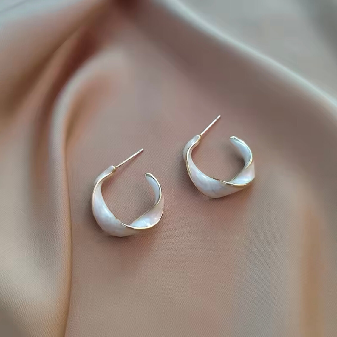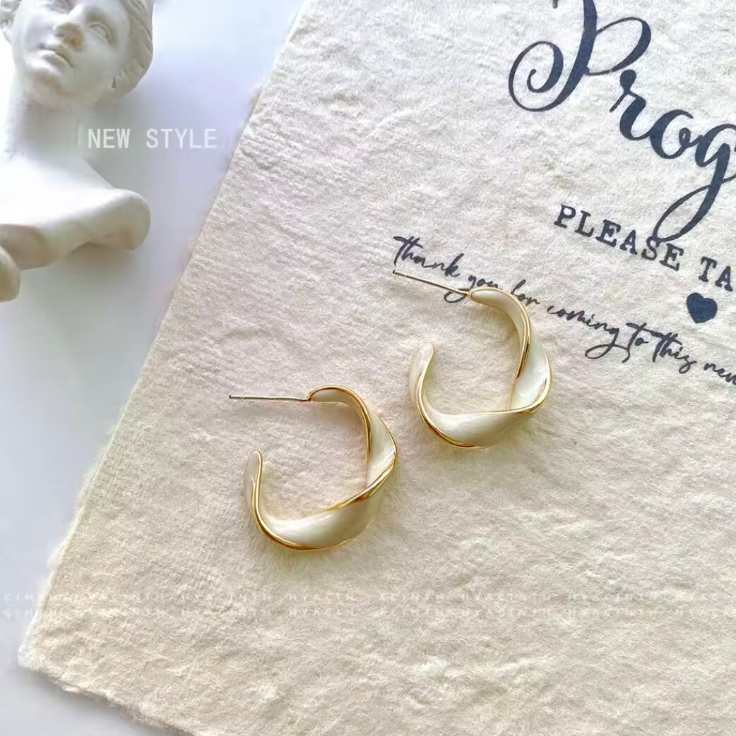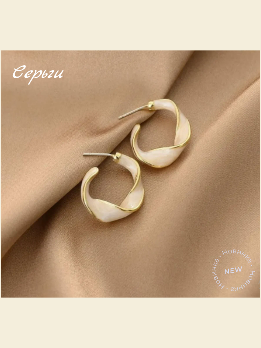 Серьги бижутерные двусторонние Style Group 27мм, перламутровые кольца для девушек