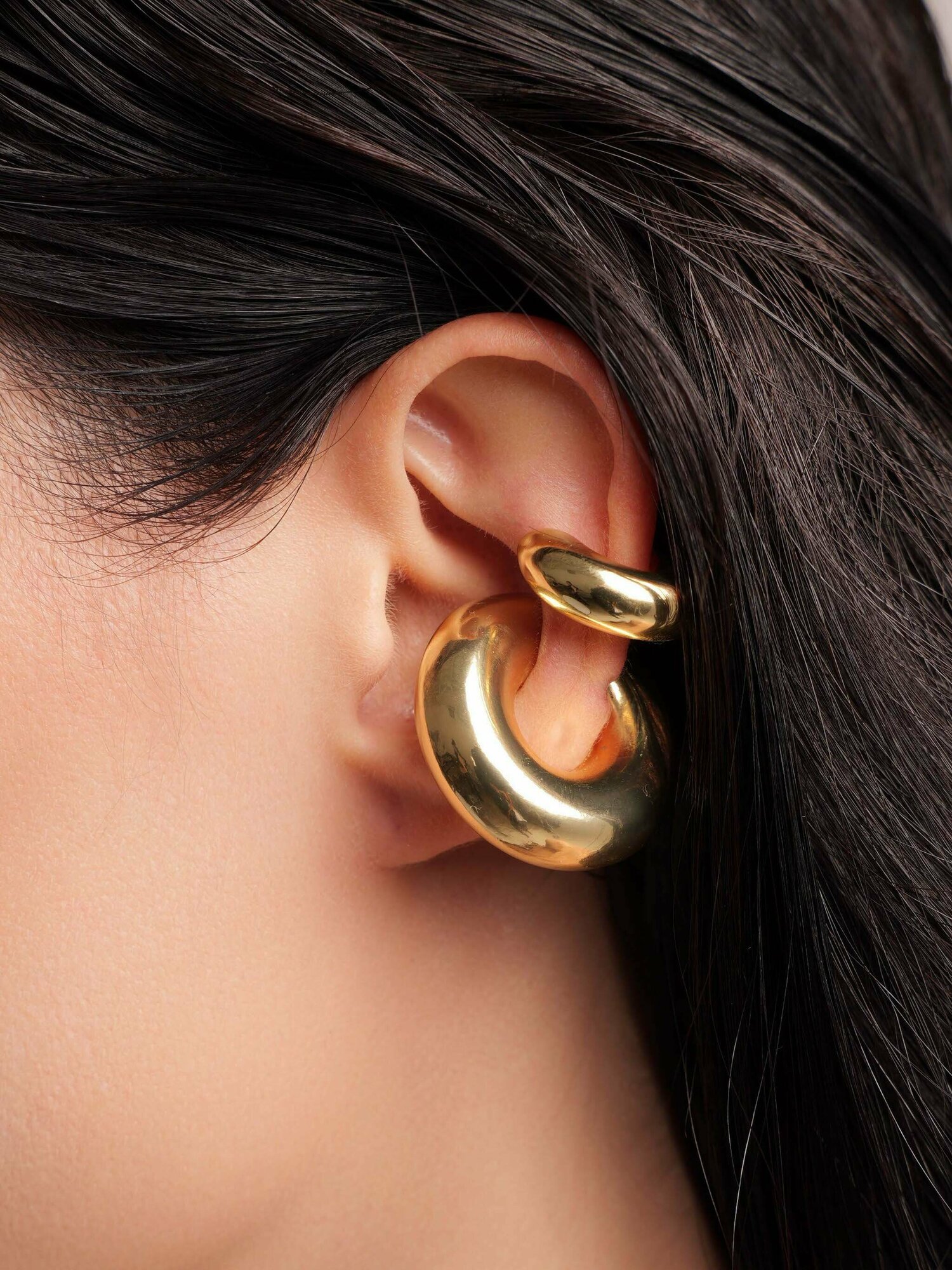 Серьги каффы RUSHEV, размер 30 мм, золотистый