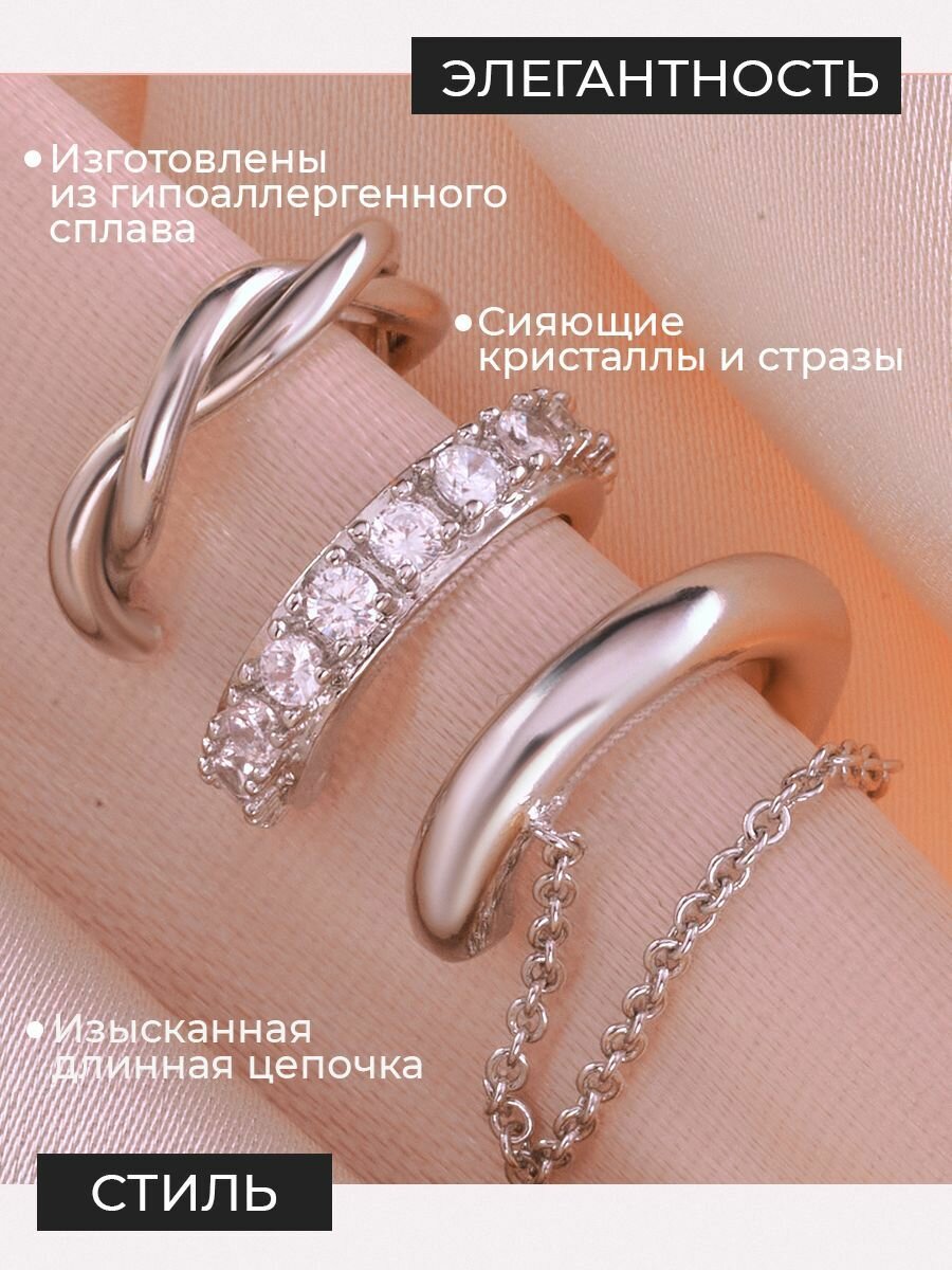 Каффы без прокола , набор сережек 3 штуки серебристый You&Im интересное: