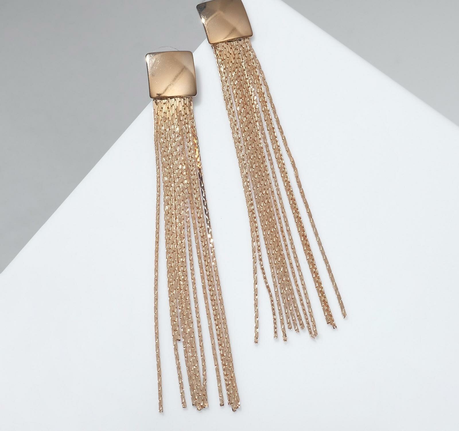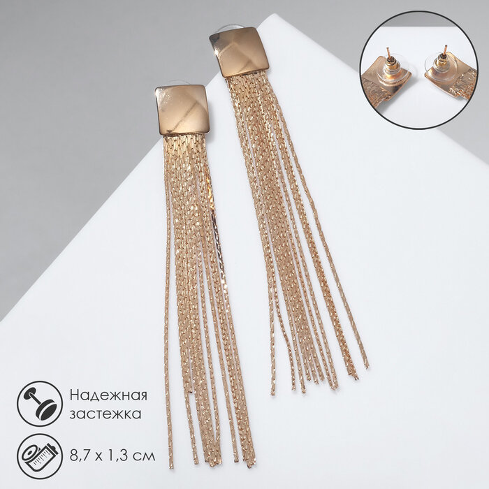Серьги висячие «Голливуд» квадрат с нитями, цвет розовое золото, 8,7см интересное: