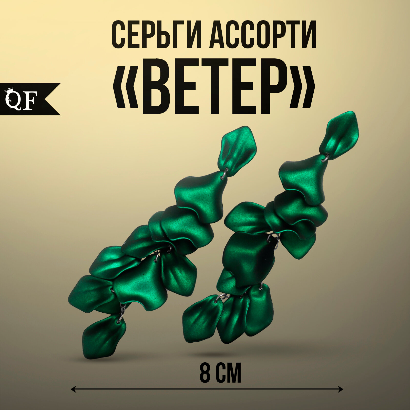 Серьги ассорти "Ветер" грация, цвет зелёный в золоте 5002832 интересное: