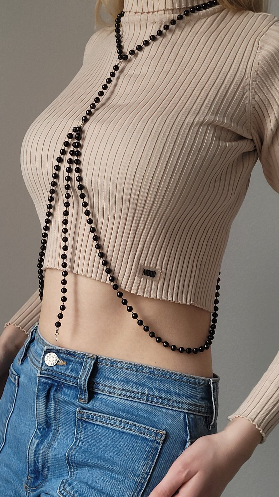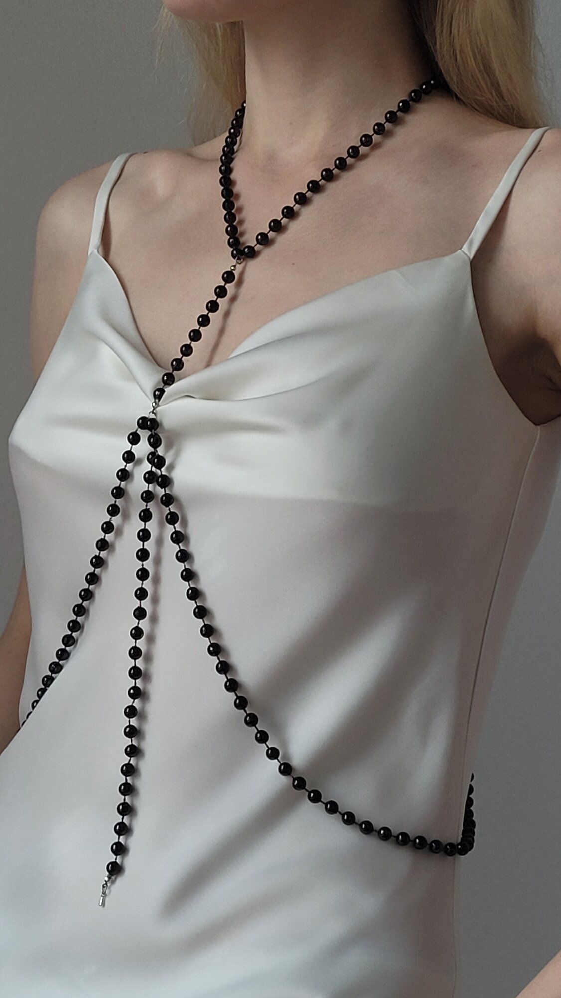 Купить Бодичейн, черная цепочка на тело и плечи из бусин