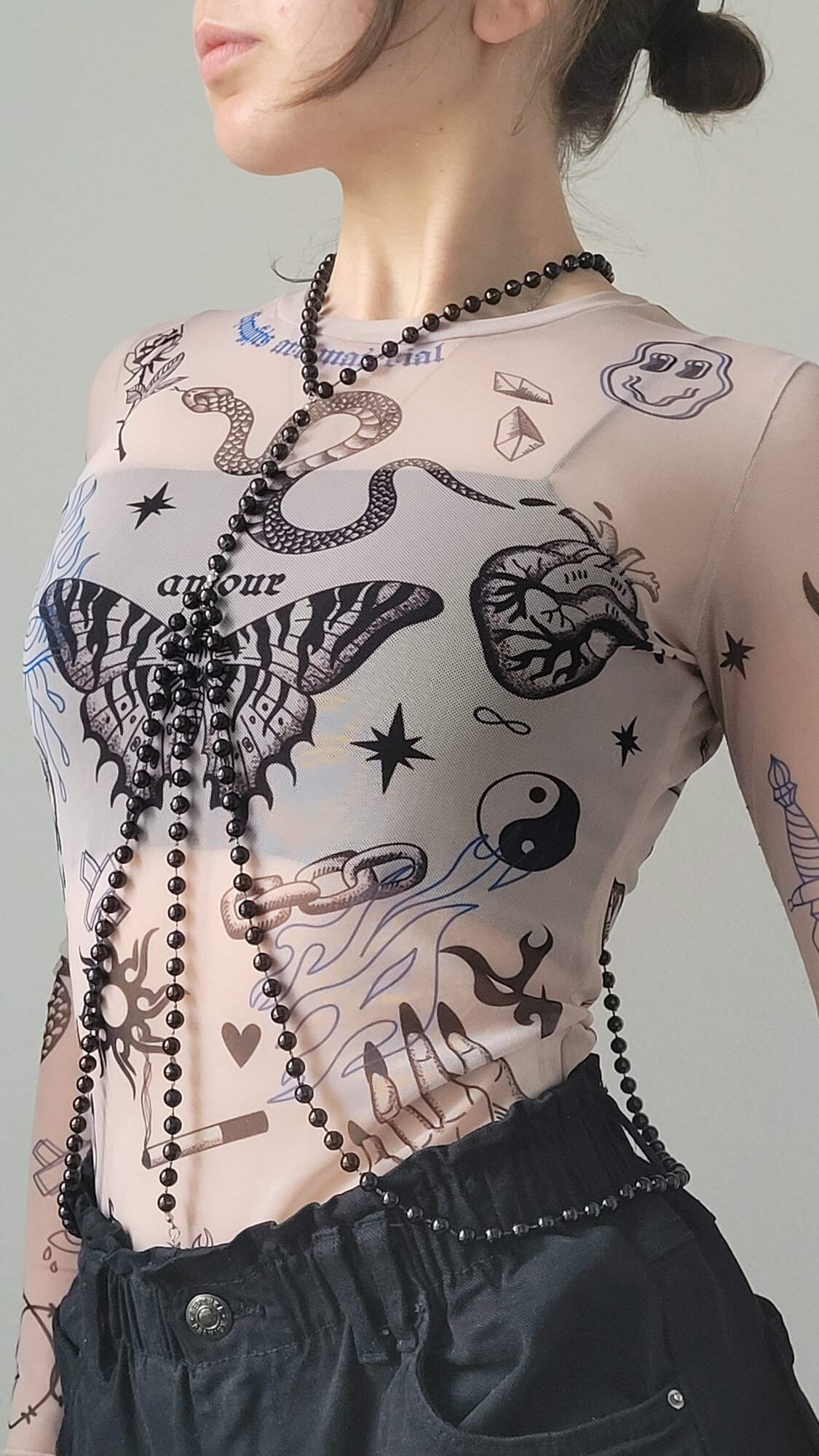 СохранитьБодичейн, черная цепочка на тело и плечи из бусин интересное: