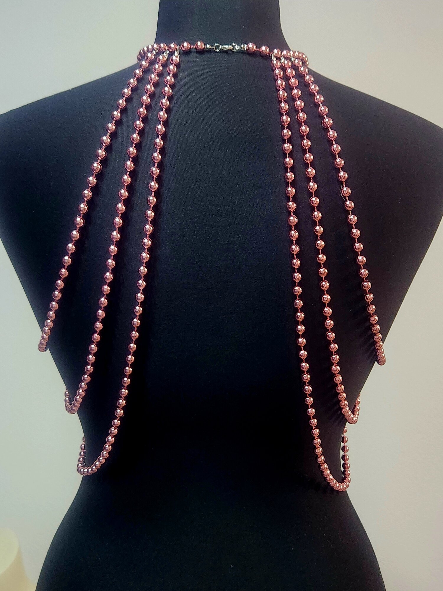 Бодичейн, медная цепочка на тело и плечи из бусин